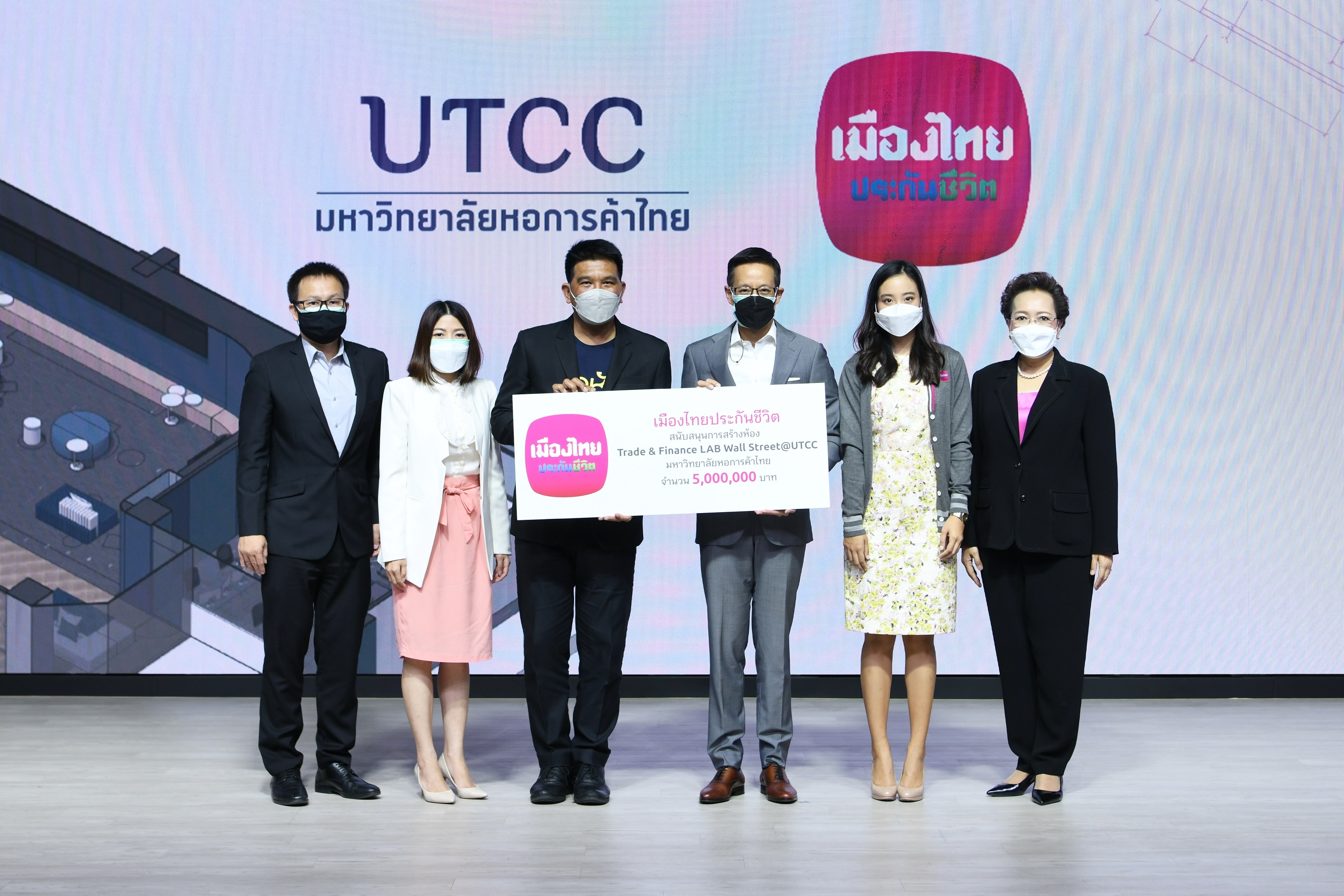 21 กุมภาพันธ์ 2565 : สาระ ล่ำซำ ประธานเจ้าหน้าที่บริหาร พิตราภรณ์ บุณยรัตพันธุ์ รองกรรมการผู้จัดการอาวุโส และ พุฒิ เด่นสมพรพันธ์ รองกรรมการผู้จัดการ และ สาริศา ล่ำซำ ผู้ชำนาญงาน ฝ่ายยุทธศาสตร์องค์กร บริษัท เมืองไทยประกันชีวิต จำกัด (มหาชน) สนับสนุนการสร้างห้อง Trade & Finance LAB : Wall Street@UTCC แก่มหาวิทยาลัยหอการค้าไทย ซึ่งเป็นการจัดทำโครงการพัฒนาห้องปฏิบัติการ เพื่อเป็นแหล่งการเรียนรู้ภายนอกห้องเรียนให้แก่นักศึกษา ตามแนวทางสอดคล้องกับการเป็นมหาวิทยาลัยแห่งการฝึกฝน Practice University