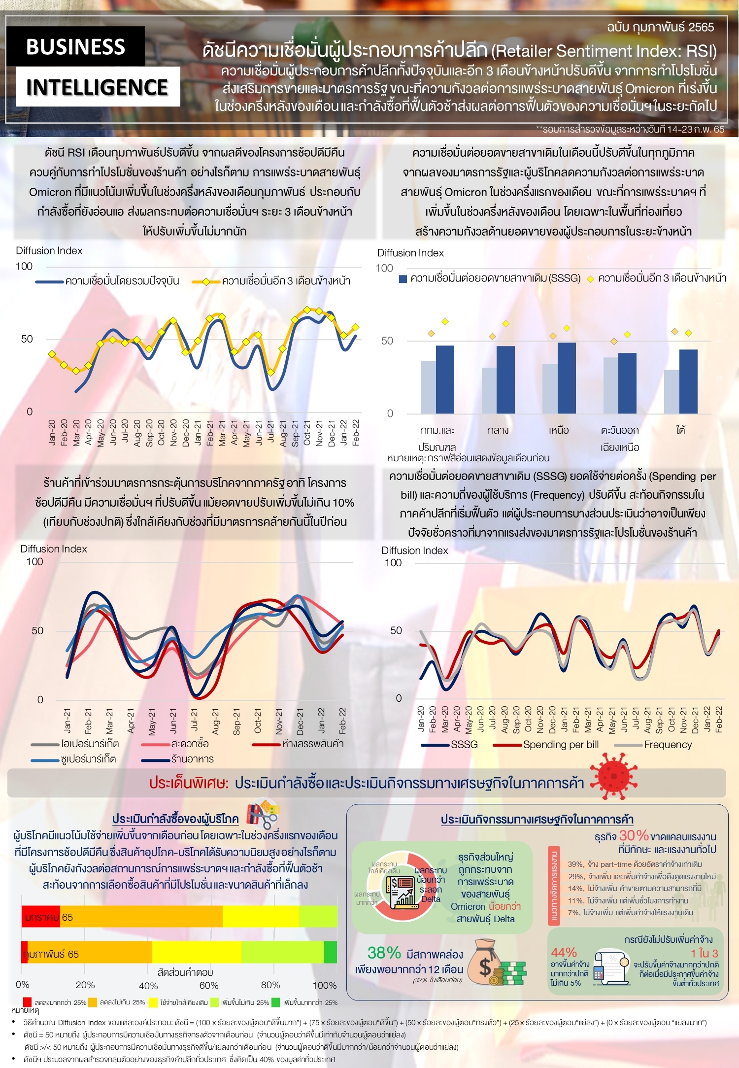 (2) ผลสำรวจดัชนีความเชื่อมั่นผู้ประกอบการค้าปลีก (RSI) เดือนกุมภาพันธ์ 2565 ซึ่งจัดทำร่วมกับสมาคมผู้ค้าปลีกไทย