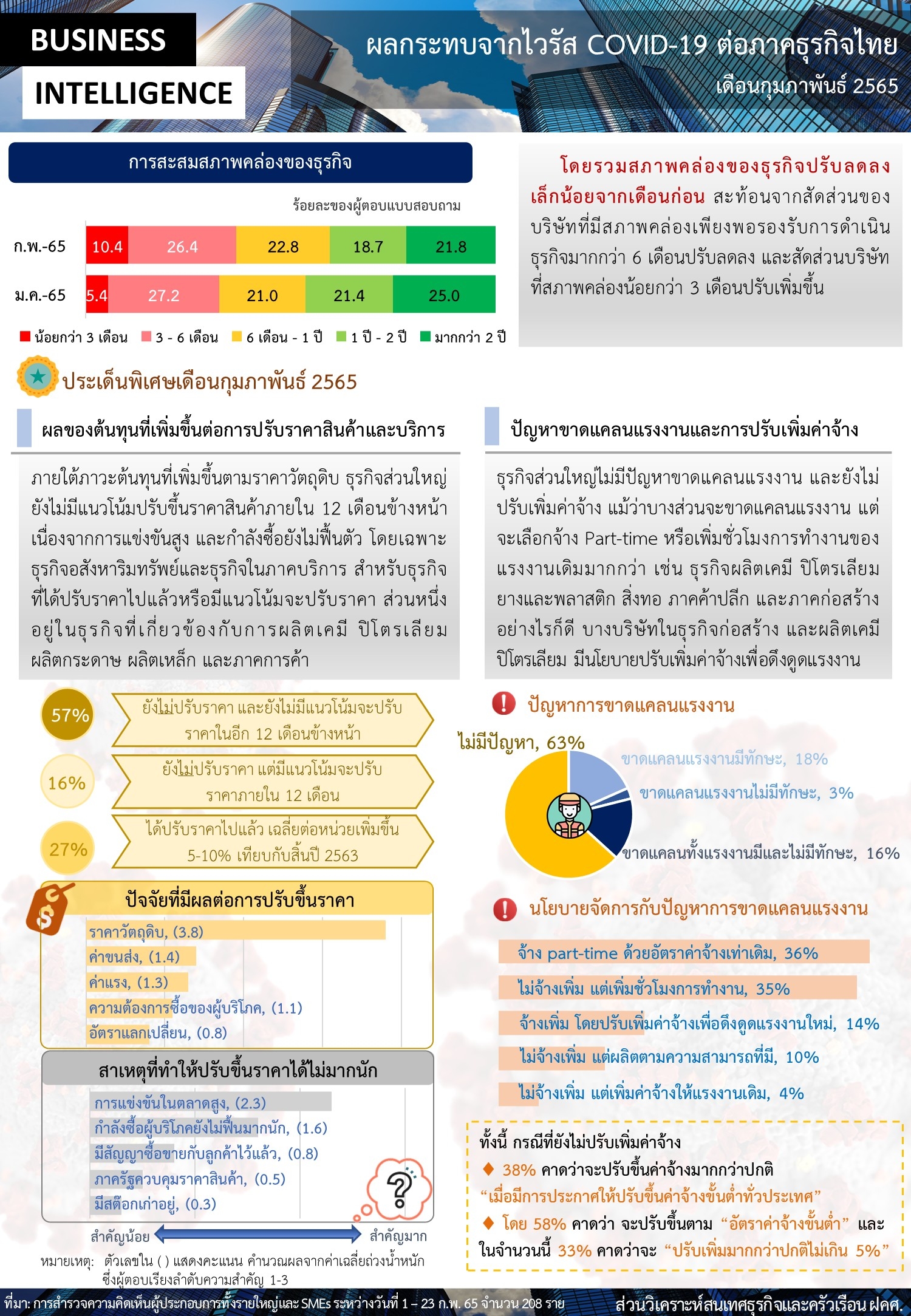 (1) ผลสำรวจเรื่องผลกระทบจากไวรัส COVID-19 ต่อภาคธุรกิจไทย (BSI COVID) เดือนกุมภาพันธ์ 2565