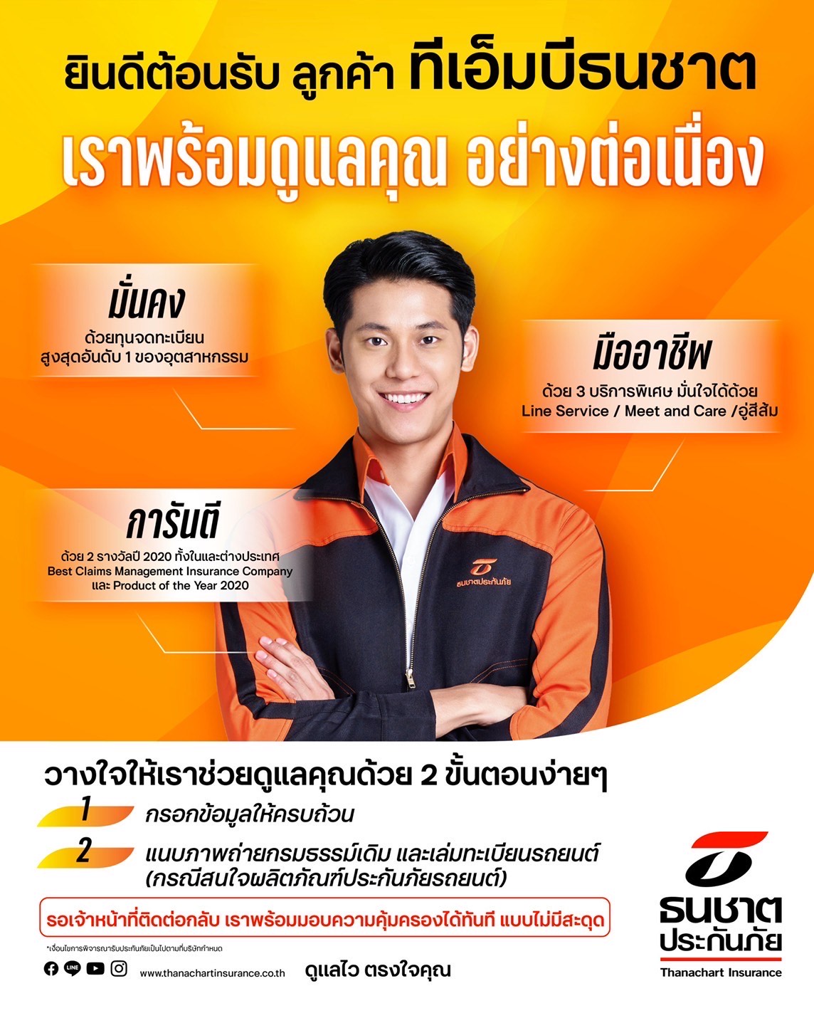 โดยลูกค้าที่สนใจสามารถลงทะเบียนสมัครง่ายๆใน 2 ขั้นตอนจาก 2 ช่องทางออนไลน์ที่สะดวกได้แก่เว็บไซต์ www.thanachartinsurance.com หรือ Line Official Account ธนชาตประกันภัย จากนั้น กรอกข้อมูลให้ครบถ้วนและแนบภาพถ่ายกรมธรรม์เดิมและเล่มทะเบียนรถยนต์ แล้วรอเจ้าหน้าที่ของบริษัทติดต่อกลับ เพียงเท่านี้ก็จะได้รับความคุ้มครองอย่างต่อเนื่องไม่มีสะดุด