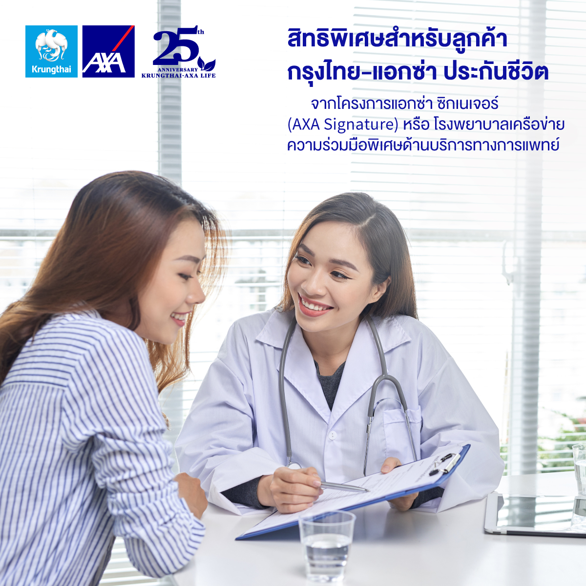 14 มีนาคม 2565 : บมจ.กรุงไทย-แอกซ่า ประกันชีวิต ตอกย้ำการเป็นผู้นำด้านประกันชีวิตและบริการด้านสุขภาพ เล็งเห็นถึงความสำคัญในการเข้ารับการรักษาพยาบาล และประสบการณ์การใช้บริการที่โรงพยาบาลของลูกค้าคนสำคัญ เปิดตัวโครงการ “แอกซ่า ซิกเนอเจอร์ (AXA Signature) หรือโรงพยาบาลเครือข่ายความร่วมมือพิเศษด้านบริการทางการแพทย์” เพื่อยกระดับมาตรฐานด้านบริการสุขภาพ การรักษาพยาบาล รวมถึงบริการที่สนองตอบความต้องการของลูกค้า ซึ่งโรงพยาบาลที่เข้าร่วมโครงการ จะมอบสิทธิพิเศษให้แก่ลูกค้าของบริษัทฯ ให้สามารถเข้าถึงบริการที่มีคุณภาพ รวดเร็ว สะดวกสบาย และนำเสนอทางเลือกพิเศษทางการแพทย์ที่หลากหลาย อาทิ