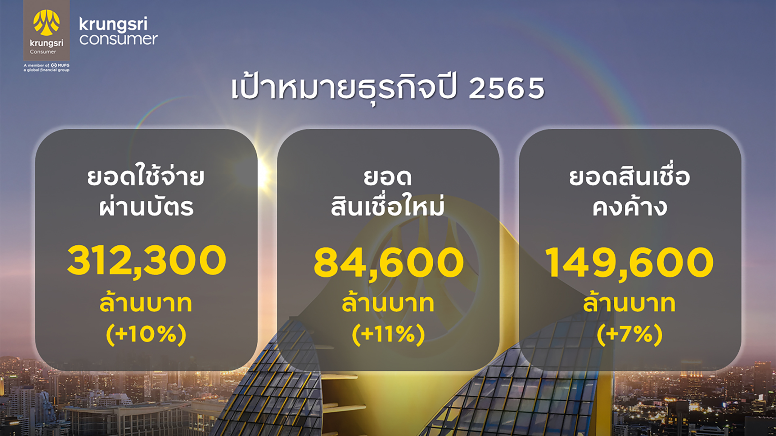 ยอดสินเชื่อคงค้าง 139,900 ล้านบาท อันเป็นผลจากการบริหารค่าใช้จ่าย พร้อมใช้เทคโนโลยีมาเพิ่มประสิทธิภาพการดำเนินงาน ควบคู่กับการดูแลคุณภาพสินทรัพย์ด้วยการบริหารความเสี่ยงอย่างรัดกุม และช่วยเหลือลูกค้าที่ได้รับผลกระทบอย่างต่อเนื่อง โดยอัตราส่วนสินเชื่อที่ไม่ก่อให้เกิดรายได้ (NPL) ของกรุงศรี คอนซูมเมอร์ อยู่ที่ระดับ 1.1% สำหรับบัตรเครดิต และ 2.8% สำหรับสินเชื่อส่วนบุคคลและสินเชื่อผ่อนชำระ ซึ่งนับว่าต่ำกว่าค่าเฉลี่ยในธุรกิจ”