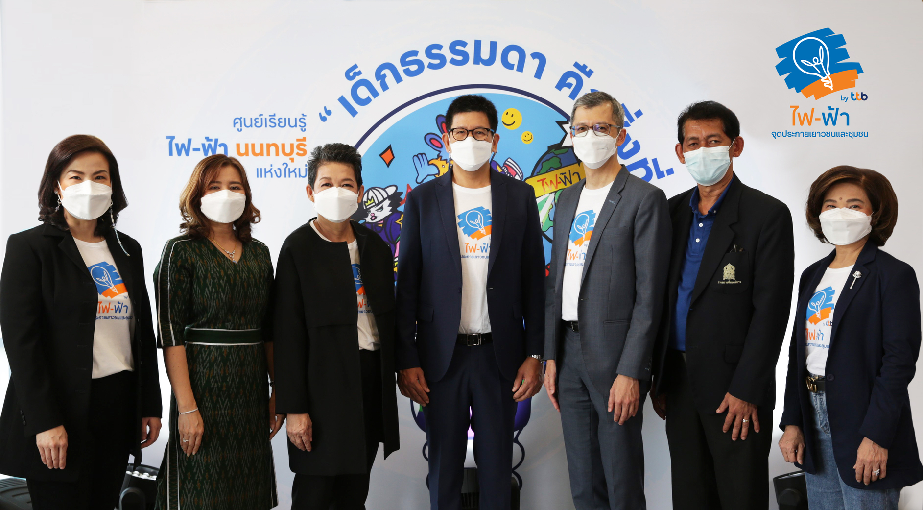 23 มีนาคม 2565 : ทีเอ็มบีธนชาต หรือ ทีทีบี (ttb) นำโดย ดร.เอกนิติ นิติทัณฑ์ประภาศ ประธานกรรมการ เดินหน้าสานต่อโครงการไฟ-ฟ้า โดย ทีทีบี กิจกรรมสังคมเพื่อความยั่งยืนจากมูลนิธิทีทีบี เปิดศูนย์เรียนรู้ไฟ-ฟ้า นนทบุรี ขยายพื้นที่แห่ง “โอกาส” ให้แก่เด็ก ๆ ได้มีแหล่งเรียนรู้ทักษะทางศิลปะและทักษะชีวิตแห่งใหม่ พร้อมจุดประกายให้ค้นพบถึงศักยภาพของตนเอง สร้างความเปลี่ยนแปลงให้ตนเอง รวมทั้งสังคม และผู้คนรอบข้างให้มีชีวิตที่ดีขึ้นอย่างยั่งยืนตอกย้ำแนวคิด “เด็กธรรมดา…คือสิ่งที่สวยงาม” ณ ศูนย์เรียนรู้ไฟ-ฟ้า นนทุบรี เมื่อเร็ว ๆ นี้