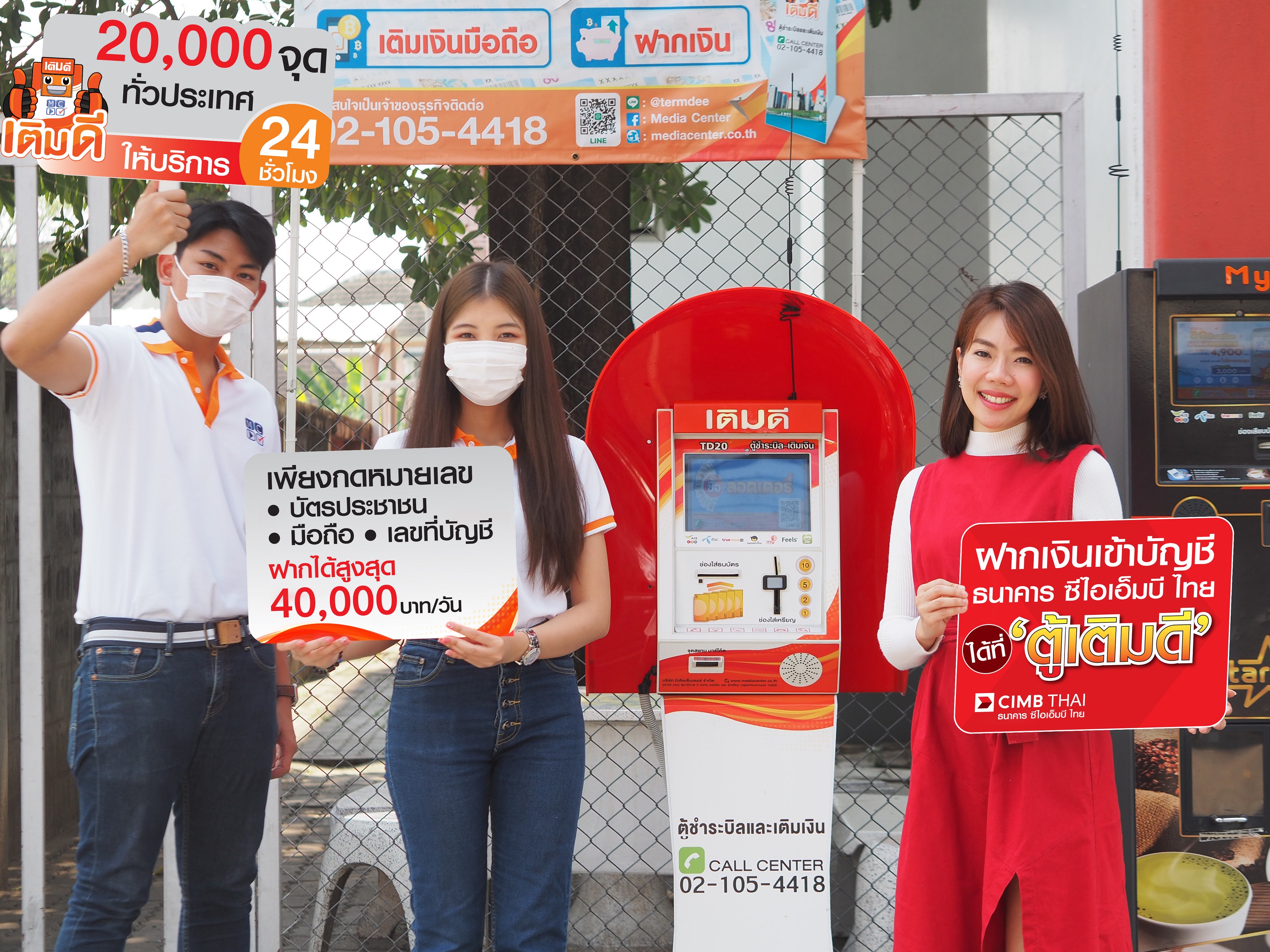 24 มีนาคม 2565 : ธนาคาร ซีไอเอ็มบี ไทย ขยายจุดรับฝากเงินสดอีกกว่า 20,000 จุด ผ่านตู้เติมดี และจุดให้บริการเติมดี ทั่วประเทศ เพิ่มความสะดวกให้ผู้ถือเงินสด สามารถฝากเงินเข้าบัญชีธนาคาร ซีไอเอ็มบี ไทย ได้ที่ตู้เติมดีใกล้บ้าน ที่ทำงาน หรือสถานประกอบการ ตลอด 24 ชั่วโมง เป็นอีกทางเลือกหนึ่ง เหมาะกับผู้ฝากเงินที่ไม่สะดวกเดินทางมาสาขาธนาคาร
