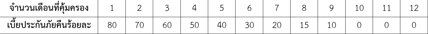 เช่น หากจำนวนเดือนที่มีการคุ้มครองไปแล้วตั้งแต่วันที่เริ่มทำ จนถึง 1 เดือน จะได้รับเบี้ยประกันภัยคืนร้อยละ 80 หรือหากคุ้มครองไปแล้ว 2 เดือนได้รับเบี้ยประกันภัยคืนร้อยละ 70 เป็นต้น