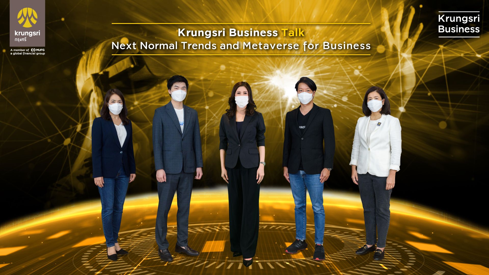 กรุงเทพฯ 28 มีนาคม 2565 : กรุงศรี (ธนาคารกรุงศรีอยุธยา จำกัด (มหาชน)) จัดงานสัมมนาออนไลน์ Krungsri Business Talk ภายใต้หัวข้อ Next Normal Trends and Metaverse for Business เมื่อวันพฤหัสบดีที่ 24 มีนาคม 2565 ที่ผ่านมา งานนี้จัดขึ้นเพื่อลูกค้าธุรกิจของกรุงศรีรวมถึงผู้ประกอบการที่สนใจ โดย ภายในงานสัมมนาครั้งนี้ ธนาคารได้เชิญผู้เชี่ยวชาญสาขาต่าง ๆ มาร่วมแบ่งปันอัพเดทเทรนด์ใหม่ ๆ ในโลกดิจิทัลและการตลาดให้ผู้ประกอบการได้นำไปปรับใช้ เพื่อเพิ่มประสิทธิภาพและการแข่งขันในโลกธุรกิจ โดยมีนางสาวดวงกมล ลิมป์พวงทิพย์ ประธานคณะเจ้าหน้าที่ด้านลูกค้าธุรกิจ SME ธนาคารกรุงศรีอยุธยา จำกัด (มหาชน) และ นางสาวมันตินี อัครเสริญ ผู้บริหารสายงานการตลาดลูกค้าธุรกิจ ธนาคารกรุงศรีอยุธยา จำกัด (มหาชน) ให้การต้อนรับ