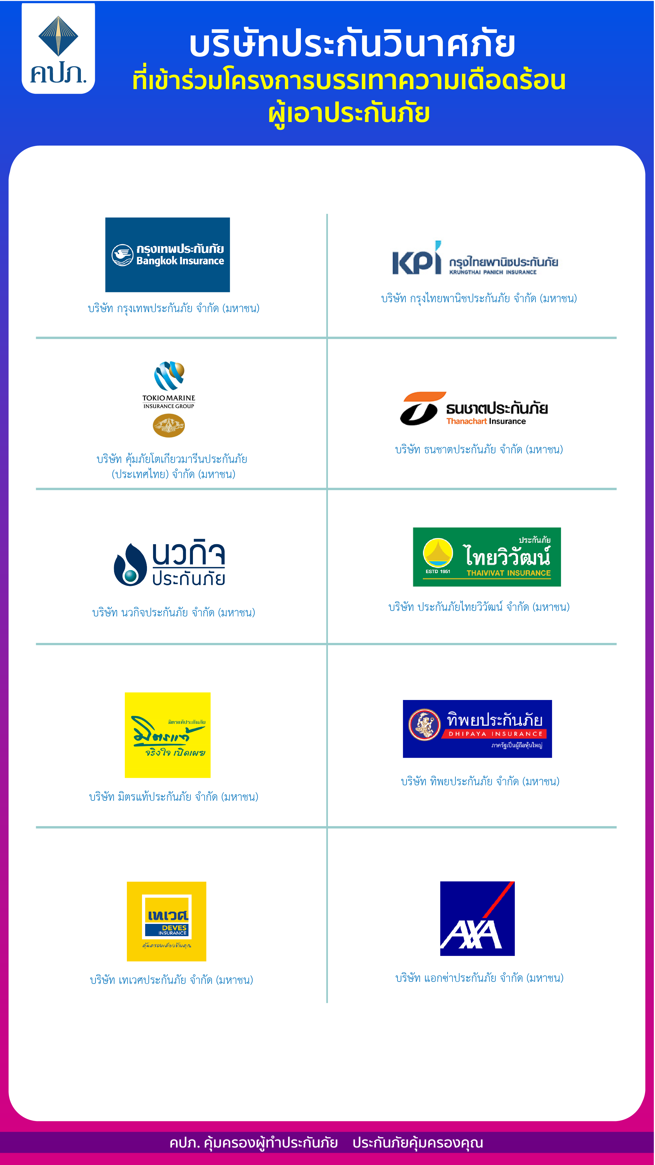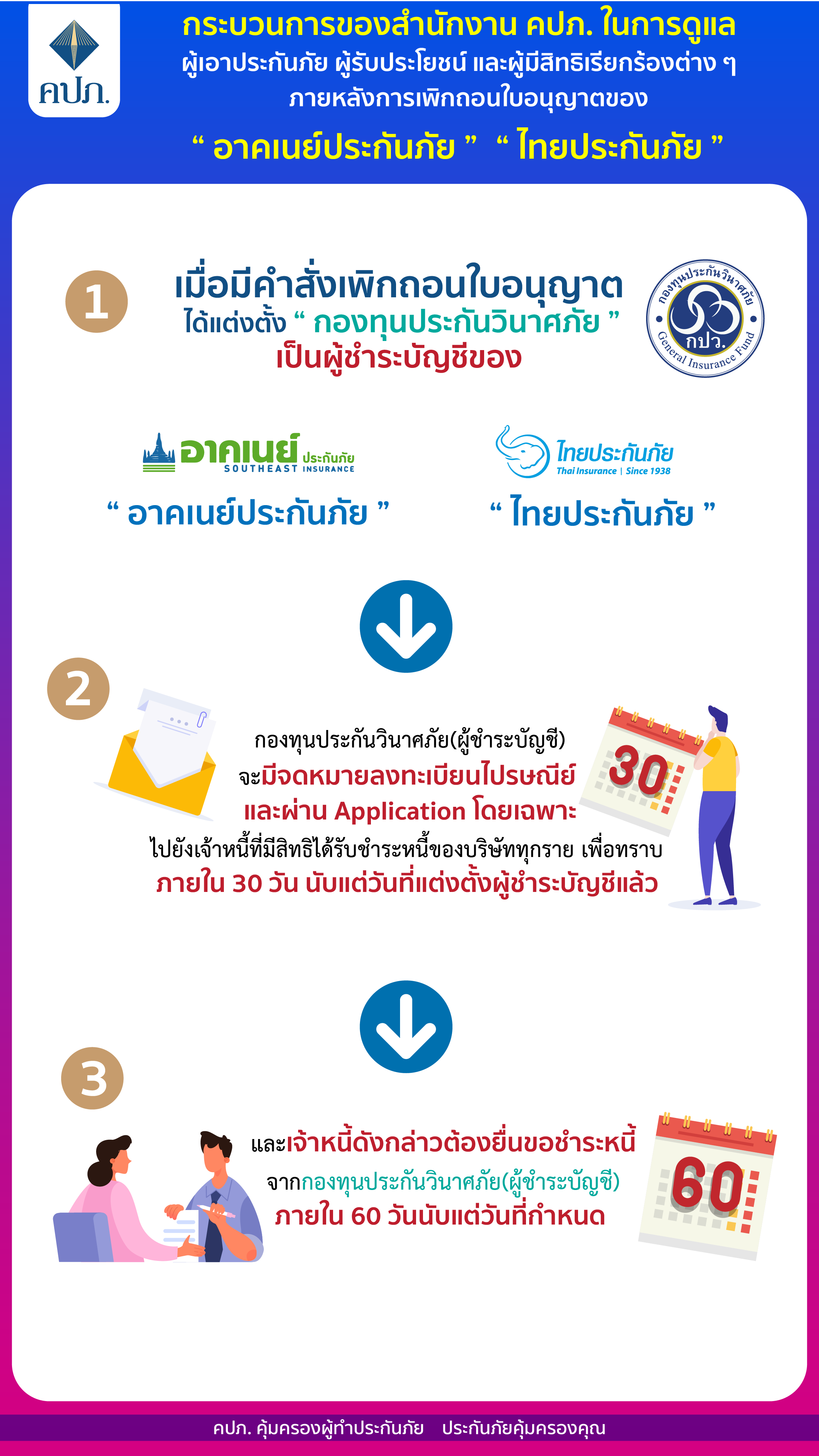 การดำเนินการช่วยเหลือเพื่อบรรเทาผลกระทบต่อผู้เอาประกันภัย กรณีการเพิกถอนใบอนุญาตประกอบธุรกิจประกันวินาศภัย บริษัท อาคเนย์ประกันภัย จำกัด (มหาชน) และ บริษัท ไทยประกันภัย จำกัด (มหาชน)