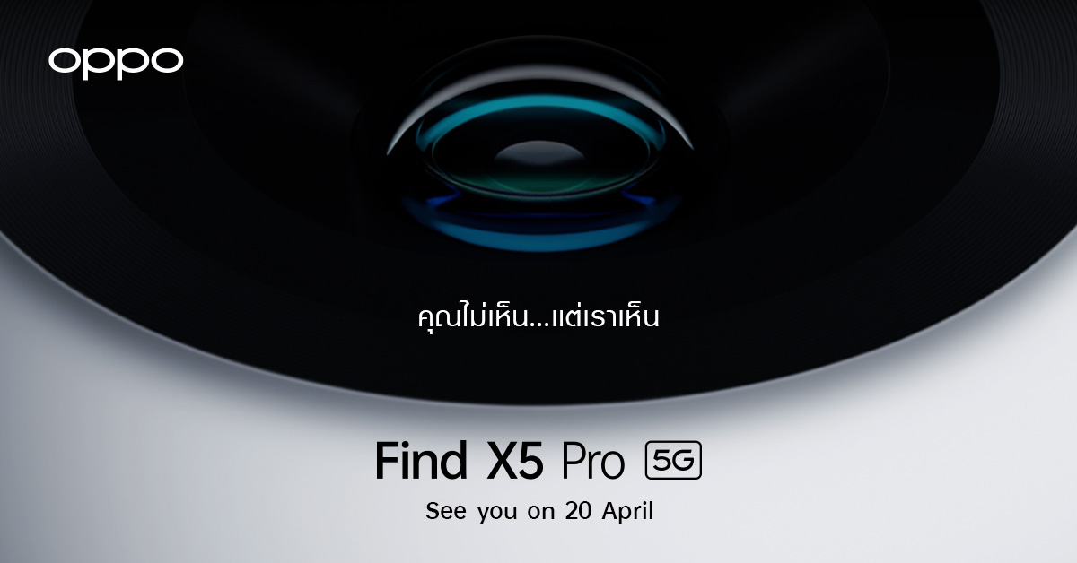 5 เมษายน 2565 : วันนี้ทาง OPPO Thailand ได้มีการเผยภาพทีเซอร์ของสมาร์ตโฟนแฟลกชิปในตระกูล Find X Series รุ่นใหม่ล่าสุด “OPPO Find X5 Pro 5G” ที่มาพร้อมกับภาพของเลนส์กล้องและข้อความ “คุณไม่เห็น…แต่เราเห็น” ซึ่งแสดงให้เห็นถึงคุณภาพอันทรงพลังของกล้องที่จะได้รับการติดตั้งมาในสมาร์ตโฟนแฟลกชิปรุ่นนี้