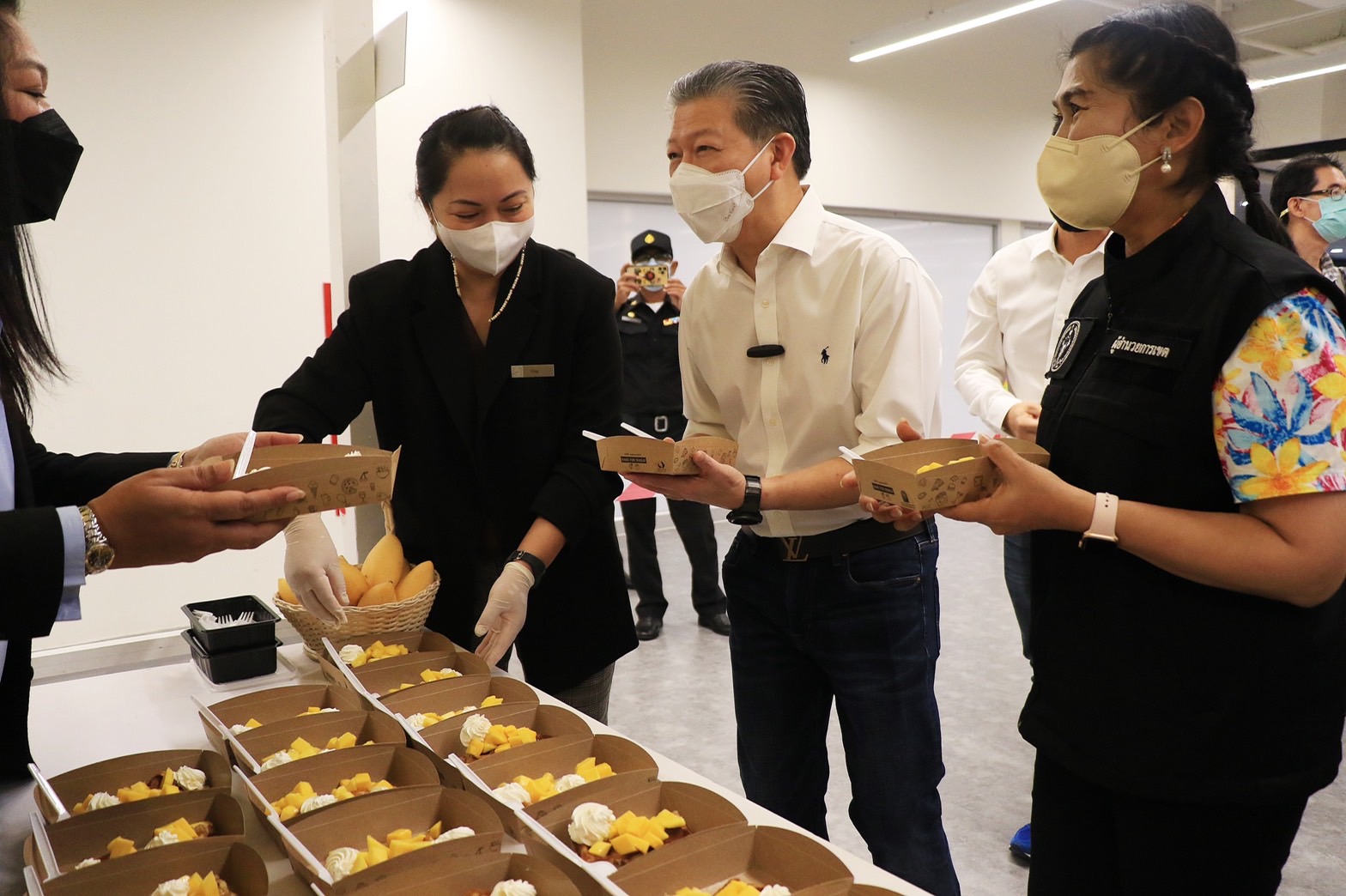 ในวันศุกร์ที่ 8 เมษายน 2565 ณ ศูนย์การค้าเอ็ม บี เค เซ็นเตอร์ ชั้น 4 โซน A พร้อมกันนี้ยังร่วมรณรงค์เรื่องลดการใช้ถุงพลาสติก โดยเชิญชวนให้ผู้สนใจที่จะมารับมะม่วงนำถุงผ้ามาเองด้วย ภายในงานนอกจากจะแจกมะม่วงหลากสายพันธุ์เป็นผล ๆ แล้ว ยังมีโรงแรมและร้านอาหารชื่อดังร่วมนำมะม่วงแปรรูปหลากหลายเมนูมาให้ได้ลิ้มรสกันด้วย ประกอบด้วย วอฟเฟิลมะม่วง จากโรงแรมปทุมวัน ปริ๊นเซส ข้าวเหนียวมะม่วง และส้มตำมะม่วง จากร้านบ้านคุณแม่ สมูทตี้มะม่วง จากร้าน Mai Cha และมะม่วงแช่อิ่ม