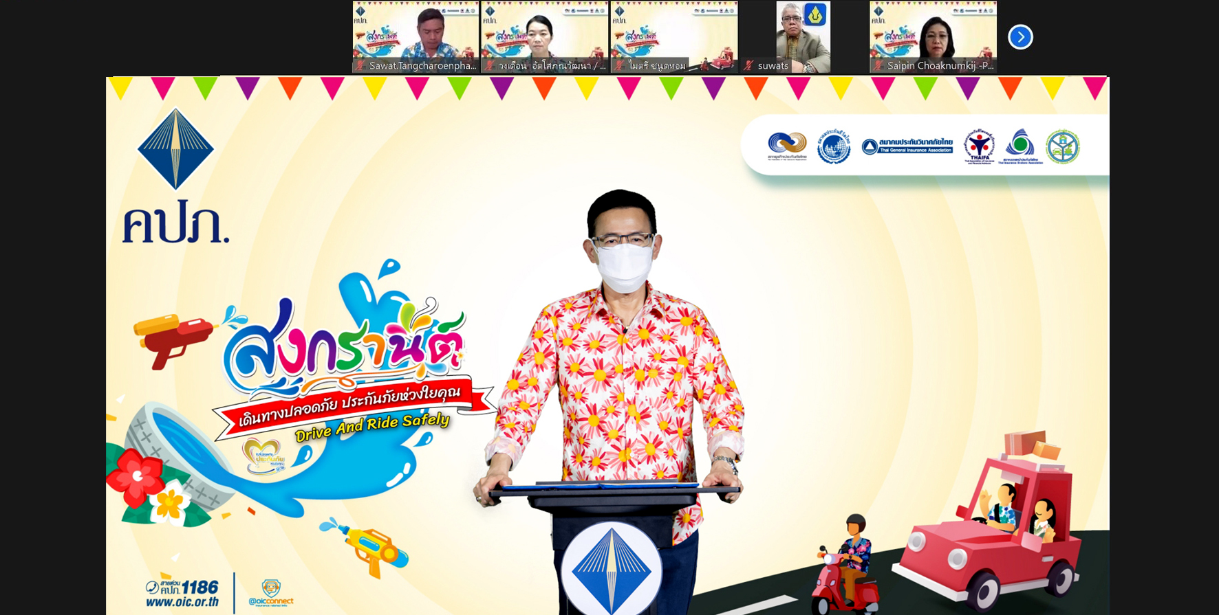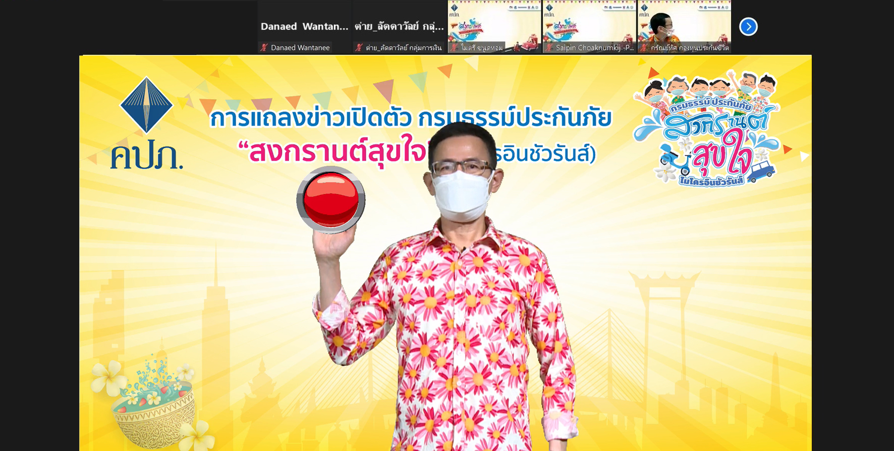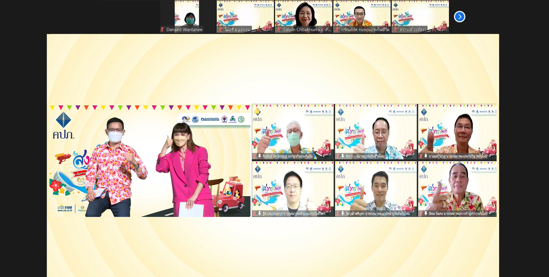 โดยมีคณะผู้บริหารสำนักงาน คปภ. ร่วมกิจกรรมกับ ประธานสภาธุรกิจประกันภัยไทย นายกสมาคมประกันวินาศภัยไทย ผู้อำนวยการบริหารสมาคมประกันชีวิตไทย นายกสมาคมตัวแทนประกันชีวิตและที่ปรึกษาการเงิน นายกสมาคมนายหน้าประกันภัยไทย นายกสมาคมการค้าผู้สำรวจภัยไทย บริษัทประกันชีวิต และบริษัทประกันวินาศภัย ผ่านระบบออนไลน์