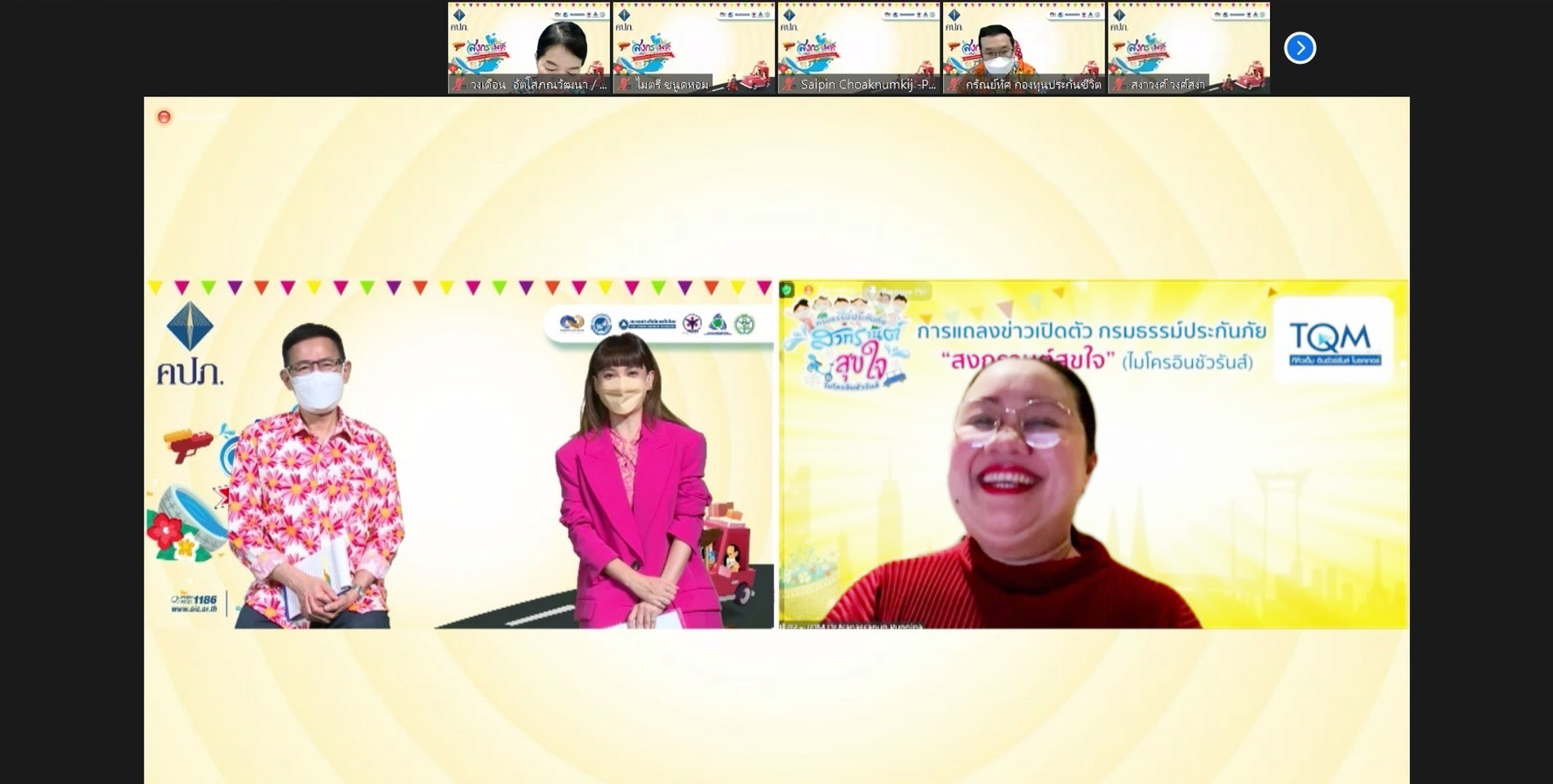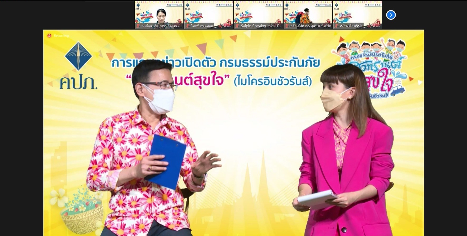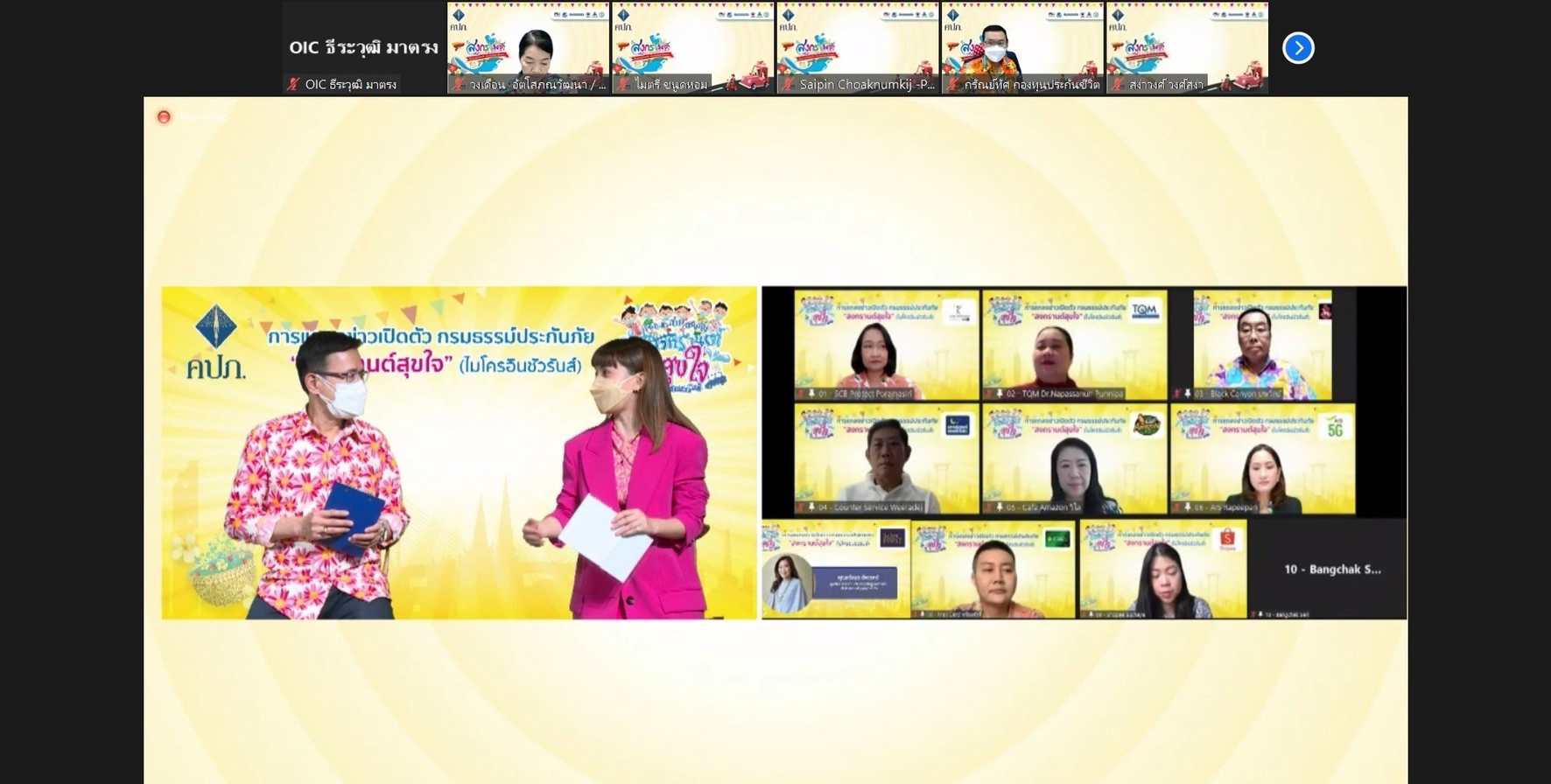 โดยมีคณะผู้บริหารสำนักงาน คปภ. ร่วมกิจกรรมกับ ประธานสภาธุรกิจประกันภัยไทย นายกสมาคมประกันวินาศภัยไทย ผู้อำนวยการบริหารสมาคมประกันชีวิตไทย นายกสมาคมตัวแทนประกันชีวิตและที่ปรึกษาการเงิน นายกสมาคมนายหน้าประกันภัยไทย นายกสมาคมการค้าผู้สำรวจภัยไทย บริษัทประกันชีวิต และบริษัทประกันวินาศภัย ผ่านระบบออนไลน์