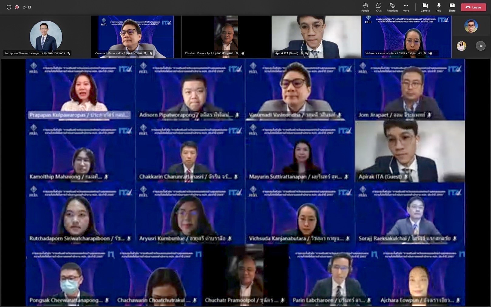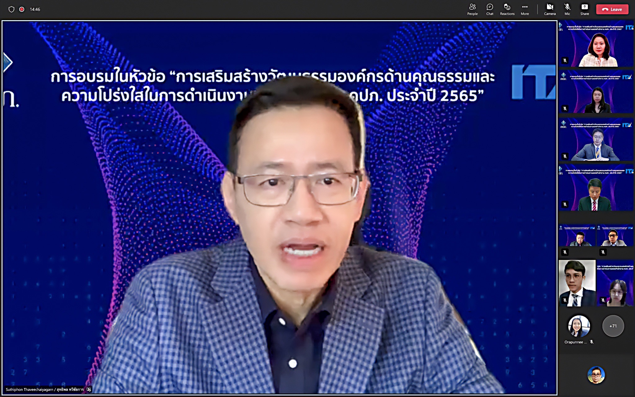 “การจัด Training และการเตรียมการเข้ารับการประเมิน ITA ของสำนักงาน คปภ. ไม่ได้มุ่งหวังเพียงจะให้ได้รับผลการประเมินที่ได้คะแนนดีขึ้นเท่านั้น แต่ความตั้งใจที่แท้จริงในการเตรียมการครั้งนี้ คือความมุ่งมั่นที่จะทำให้สำนักงาน คปภ. สามารถยกระดับด้านคุณธรรมและความโปร่งใสในการดำเนินงานตามหลักธรรมาภิบาลที่ดี เพื่อที่จะเป็นที่พึ่งของประชาชนอย่างแท้จริง ในการเข้าถึงการบริการด้านประกันภัย ด้วยความรวดเร็ว เป็นธรรมและมีคุณภาพยิ่งขึ้น ซึ่งจำเป็นต้องได้รับความร่วมมือร่วมใจจากทุกฝ่ายที่เกี่ยวข้อง” เลขาธิการ คปภ. กล่าวในตอนท้าย ![]()