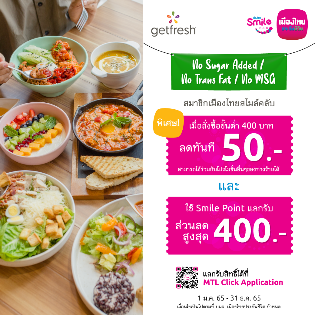 18 เมษายน 2565 : นายสาระ ล่ำซำ ประธานเจ้าหน้าที่บริหาร บริษัท เมืองไทยประกันชีวิต จำกัด (มหาชน) เปิดเผยว่า เมืองไทยประกันชีวิต โดย “เมืองไทยสไมล์คลับ” จัดกิจกรรมสร้างความสุขและรอยยิ้ม พร้อมมอบการดูแลสุขภาพรอบด้าน แก่ลูกค้าเมืองไทยประกันชีวิต ด้วยการผนึกกำลังกับพันธมิตร ร้านอาหารสุขภาพ ชื่อดัง ร้านยอดฮิต มอบสิทธิพิเศษ แก่สมาชิกเมืองไทยสไมล์คลับพร้อมเสิรฟ์เมนูสุขภาพอร่อยแบบไม่น่าเบื่อ ได้เลือกอร่อยตามสไตล์ อาทิ Getfresh ร้านเด็ดของคนรักสุขภาพที่พิถีพิถันในการคัดสรรวัตถุดิบคุณภาพดีเพื่อให้ตอบโจทย์ตามไลฟ์สไตล์ของลูกค้าที่มีเวลาน้อย แต่ใช้ชีวิตแบบแอคทีฟ และใส่ใจในการดูแลสุขภาพ ด้วยเมนูอาหารที่มีให้ลูกค้าสามารถเลือกออกแบบได้ตามความต้องการ