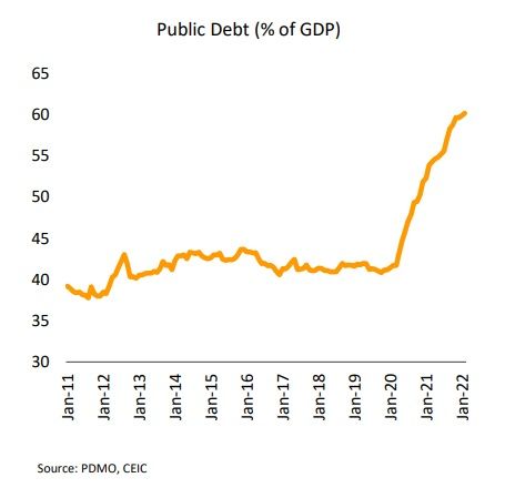 ปัจจุบันการใช้เงินกู้ตามพ.ร.ก.กู้เงิน 5 แสนล้านบาท ยังมีวงเงินคงเหลืออยู่ประมาณ 7.4 หมื่นล้านบาท และงบกลางเหลืออยู่ 6 หมื่นล้านบาท (กันไว้ใช้สำหรับภัยพิบัติ 3-4 หมื่นล้านบาท) ทั้งนี้ สำนักงานบริหารหนี้สาธารณะประเมินว่าหากรัฐบาลมีความจำเป็นต้องกู้เพิ่ม จะยังสามารถมีพื้นที่ทางการคลังกู้เงินเพิ่มได้อีกประมาณ 1.3 ล้านล้านบาท ถึงจะเต็มเพดานหนี้สาธารณะที่ขยายกรอบจาก 60% เป็น 70% ต่อ GDP (ล่าสุด ณ สิ้นเดือนกุมภาพันธ์ 2565 หนี้สาธารณะอยู่ที่ 60.17% ของ GDP)