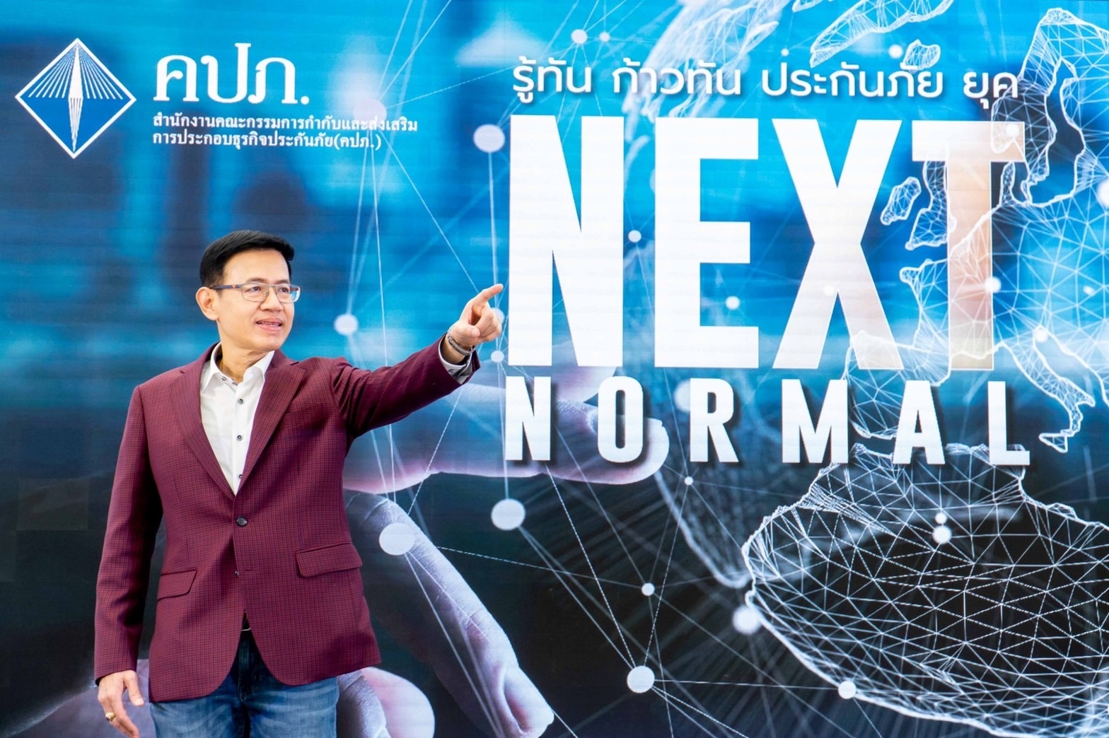 ในส่วนของธุรกิจประกันภัยหากเอาวิกฤตมาเป็นโอกาสก็สามารถอยู่ได้ แต่ถ้าไม่ปรับตัวก็อาจถูก Disrupted ซึ่งจะเห็นได้ว่าบางธุรกิจหรือบางบริษัทต้องหายไปจากวงจรธุรกิจ เนื่องจากไม่ปรับตัวให้เข้ากับสภาพแวดล้อมใหม่ที่เปลี่ยนแปลงไปอย่างรวดเร็ว เพราะเมื่อเข้าสู่ยุค Next Normal ทุกอย่างจะเปลี่ยนไปหมด ดังนั้นภาคธุรกิจและหน่วยงานกำกับของภาครัฐ ต้องคิดใหม่ เปลี่ยนวิธีดำเนินการธุรกิจใหม่ ที่จะต้องไม่ทำแบบเดิม ๆ อีกต่อไปเลขาธิการ คปภ. กล่าวด้วยว่า การนำเทคโนโลยีมาประยุกต์ใช้ในยุค Next Normal นั้น มีความท้าทาย 3 ประเด็นหลักๆ คือ