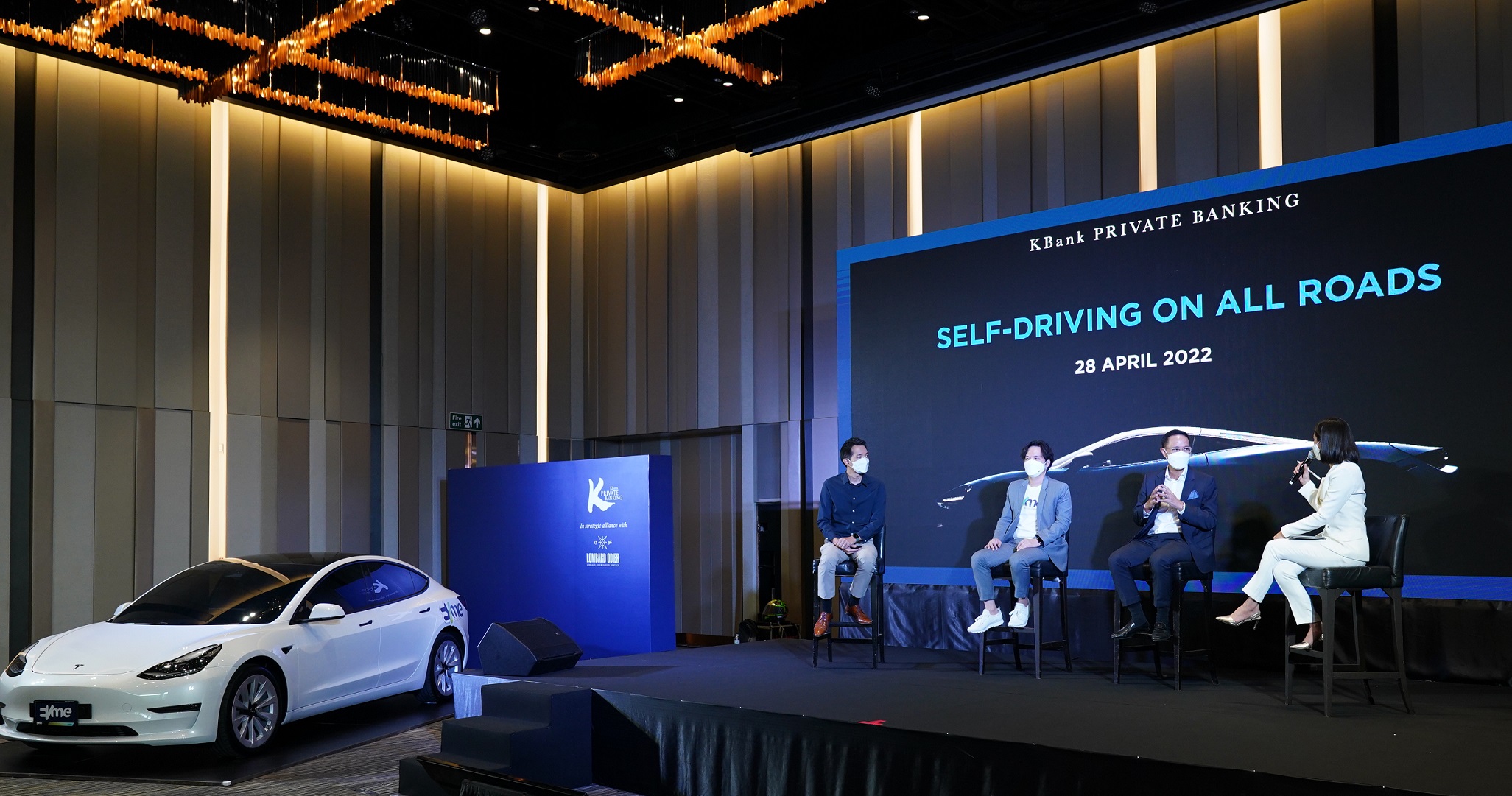 นายจิรวัฒน์ กล่าวในตอนท้ายว่า นอกจากนี้ KBank Private Banking ได้จับมือกับ EVme แพลตฟอร์มให้บริการรถยนต์ไฟฟ้าเเบบครบวงจรรายแรกและรายเดียวในประเทศไทย เพื่อเปิดโอกาสให้ลูกค้าเชื่อมประสบการณ์การลงทุนนี้ กับนวัตกรรมยานยนต์ขับเคลื่อนอัตโนมัติให้ลูกค้าได้สัมผัส ทดลองขับและใช้งานจริง ภายใต้คอนเซ็ปต์ ‘Self-Driving on All Roads’ ตอกย้ำนวัตกรรมการลงทุนแห่งอนาคตของกองทุน K-ALLROAD Series กองทุนขับเคลื่อนอัตโนมัติที่จะพานักลงทุนถึงเป้าหมายได้อย่างสะดวกสบายและปลอดภัยในทุกสภาวะตลาด