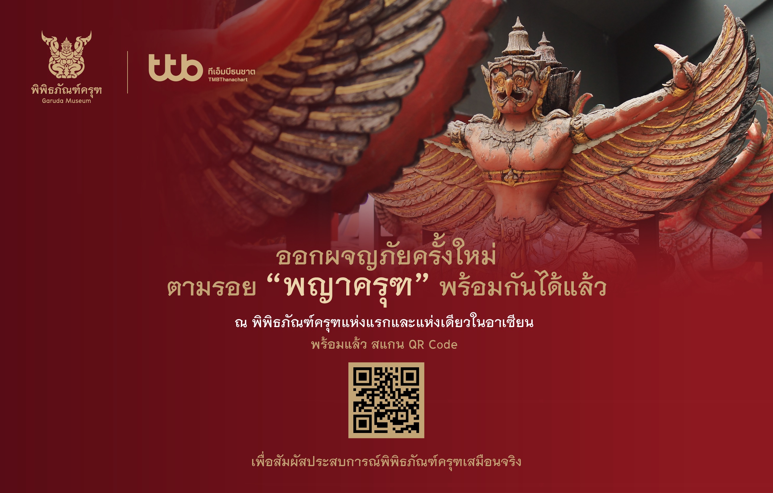 5 พฤษภาคม 2565 : ทีเอ็มบีธนชาต หรือ ทีทีบี (ttb) ขอเชิญชวนสัมผัสประสบการณ์ใหม่แห่งการเรียนรู้ผ่าน “Garuda Virtual Tour” การชมพิพิธภัณฑ์ครุฑเสมือนจริงในรูปแบบออนไลน์ด้วยตัวเอง ได้ตั้งแต่วันนี้ โดยจะได้เรียนรู้ถึงเรื่องราวประวัติความเป็นมาของ “พญาครุฑ” ผู้ซึ่งเป็นสัญลักษณ์แห่งความกตัญญู ความซื่อสัตย์ และความดีงาม ซึ่งจัดแสดงแบ่งโซนการเล่าเรื่องราวทุกแง่มุมในรูปแบบเอนิเมชันที่ทันสมัย เข้าใจง่าย เพื่อส่งเสริมให้ผู้เข้าชมได้รับแรงบันดาลใจ และสืบสานมรดกศิลปวัฒนธรรมไทย พร้อมส่งต่อสำนึกรักความเป็นไทยสู่สังคมอย่างยั่งยืน
