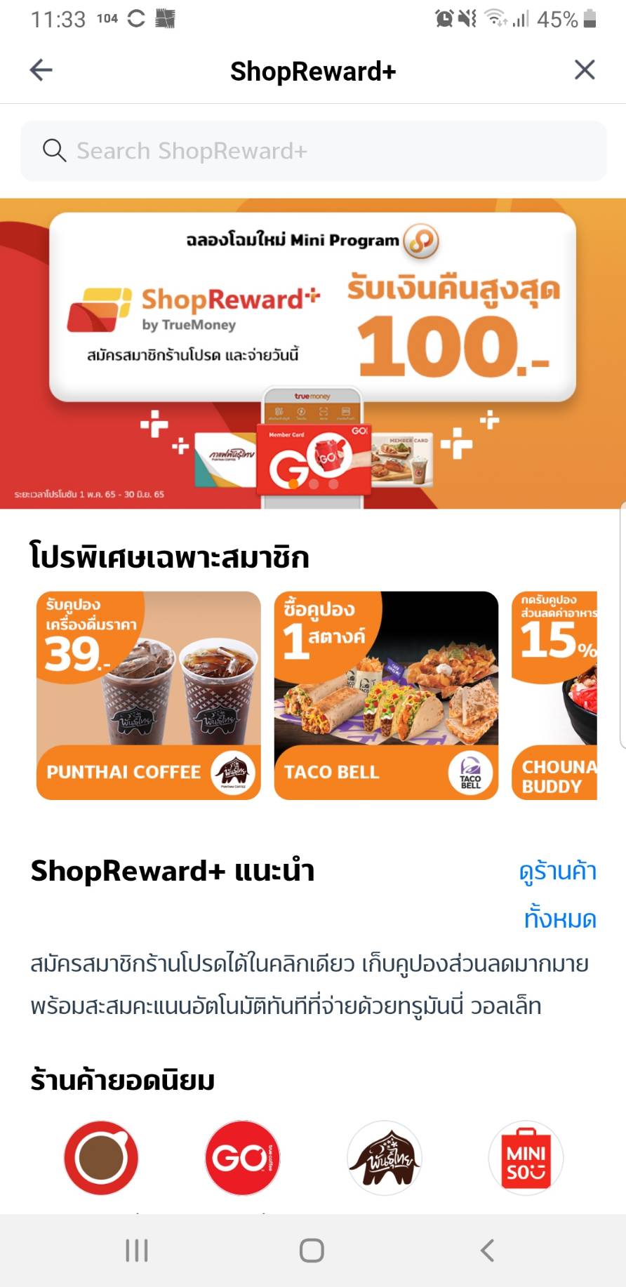 ด้วยระบบการสมัครสมาชิกร้านค้าที่ลูกค้าสามารถกดสมัครผ่านแอป ทรูมันนี่ วอลเล็ท ได้เลยง่ายๆ เพียงคลิกเดียว ก็สามารถเข้าถึงรีวอร์ดโปรแกรม สะสมแต้ม โปรโมชั่น คูปองส่วนลด และดีลดีๆ ทั้งดีลเก็บฟรีแบบ E-Coupon และ ShopDeals ซึ่งเป็นการซื้อคูปองราคาพิเศษเริ่มต้นเพียง 1 สตางค์ ลูกค้าสามารถซื้อเก็บไว้ใช้วันหลังได้ ทั้งหมดรวมไว้ในที่เดียวใน ShopReward+ โดยมีร้านค้าที่นำเสนอสินค้าและบริการมากมายจากหลากหลายหมวดหมู่ ไม่ว่าจะเป็นอาหารและเครื่องดื่ม แฟชั่น ความงาม และไลฟสไตล์ เป็นต้น”