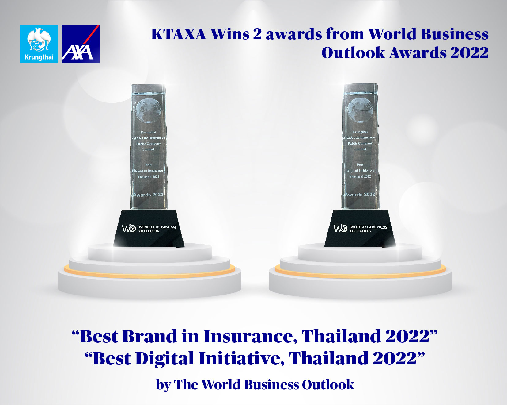 6 พฤษภาคม 2565 : บมจ.กรุงไทย-แอกซ่า ประกันชีวิต คว้า 2 รางวัลใหญ่ระดับนานาชาติ จาก World Business Outlook ในสาขา 1. “Best Brand in Insurance, Thailand 2022” และ 2. “Best Digital initiative, Thailand 2022” รางวัลนี้ถือเป็นอีกหนึ่งความภาคภูมิใจของบริษัทฯ ในความสำเร็จด้านผู้นำแบรนด์ในธุรกิจประกัน และความสำเร็จของการเป็นผู้นำด้านเทคโนโลยี รวมถึงตอกย้ำการมีลูกค้าเป็นมาเป็นที่หนึ่ง และพร้อมเคียงข้างทุกความเชื่อมั่น ดูแลกันตลอดไป