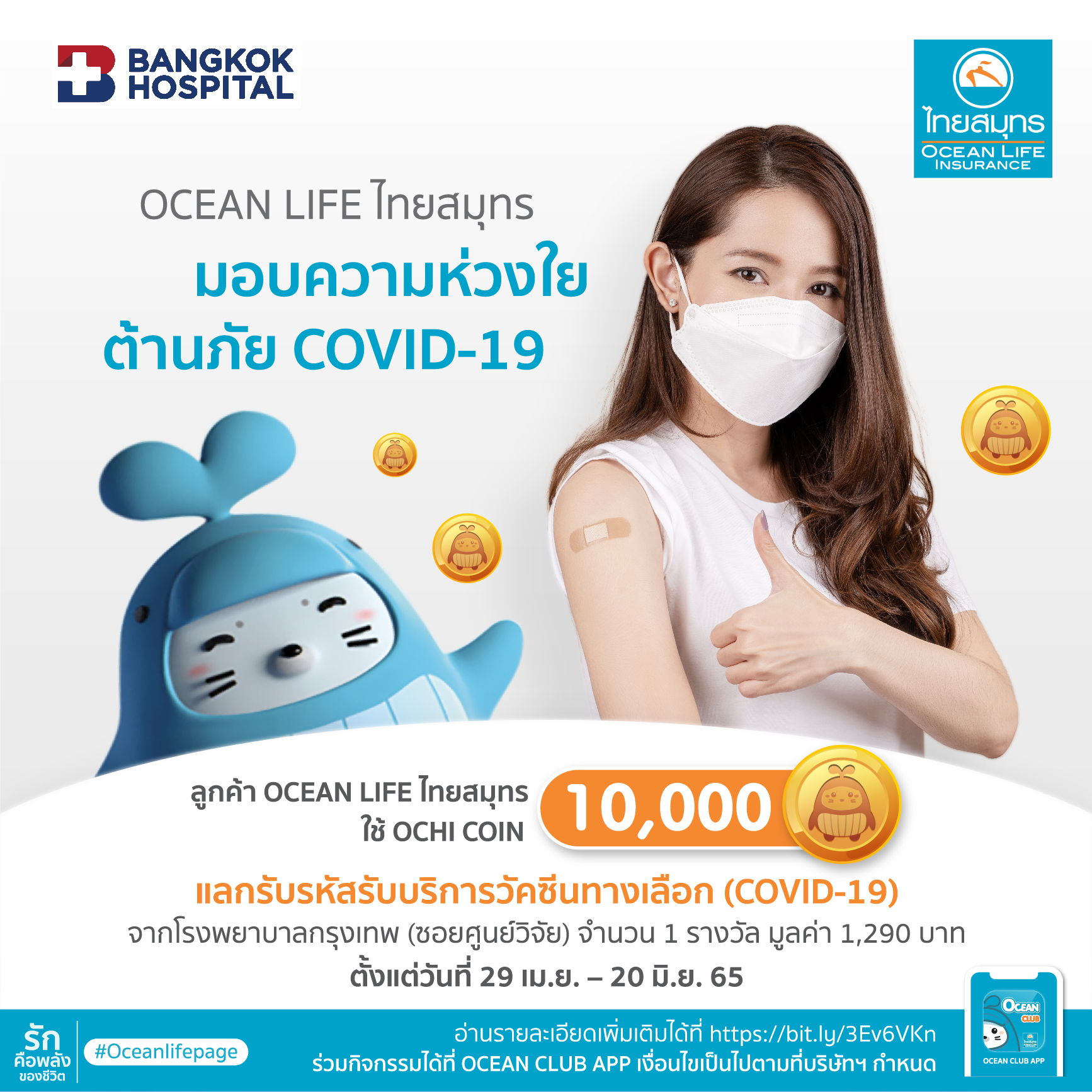 สนับสนุนให้คนไทยใช้ความรักสามด้าน ซึ่งหนึ่งในนั้นคือความรักสุขภาพ Love Your Health จึงได้ส่งพลังความรักความห่วงใยมอบสิทธิพิเศษสุดเอ็กซ์คลูซีฟให้กับลูกค้าผู้ใช้ OCEAN CLUB APPLICATION ระดับ Bronze, Silver, Gold และ Platinum "แลกรับรหัสรับบริการวัคซีนทางเลือก (Covid-19) ผ่าน OCEAN CLUB APP" โดยใช้ OCHI COIN 10,000 เหรียญ แลกรับรหัสรับบริการวัคซีนทางเลือก mRNA (Covid-19) จากโรงพยาบาลกรุงเทพ มูลค่า 1,290 บาท