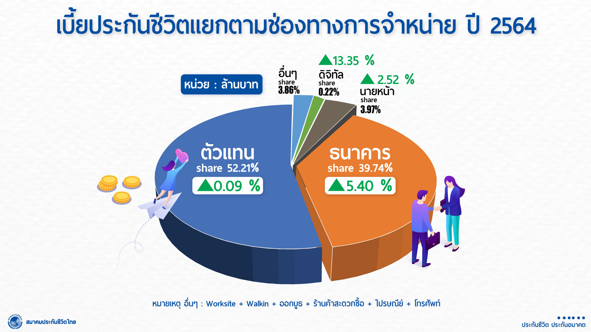 1. การขายผ่านช่องทางตัวแทนประกันชีวิต (Agency) มีเบี้ยประกันภัยรับรวม 73,558.6 ล้านบาท อัตราการเติบโตร้อยละ 5.3 คิดเป็นสัดส่วนร้อยละ 48.9