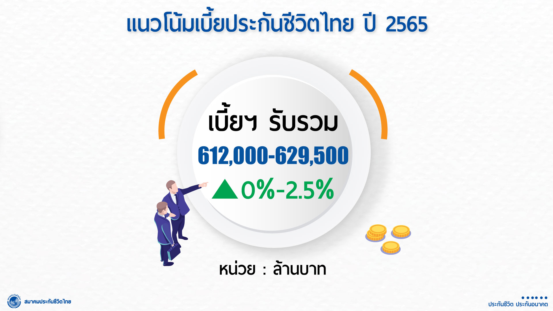 สำหรับปี 2565 สมาคมประกันชีวิตไทยคาดการณ์ว่าธุรกิจประกันชีวิตจะมีเบี้ยประกันภัยรับรวม 612,000 – 629,500 ล้านบาท มีอัตราการเติบโตระหว่างร้อยละ 0 ถึง 2.5 และมีอัตราความคงอยู่ของกรมธรรม์ประมาณร้อยละ 82 ถึง 83 เนื่องจาก จากข้อมูลสำนักงานคณะกรรมการกำกับและส่งเสริมการประกอบธุรกิจประกันภัย (คปภ.) ปี 2564 พบว่า ธุรกิจประกันชีวิตมีอัตราเบี้ยประกันภัยรับโดยตรงต่อผลิตภัณฑ์มวลรวมภายในประเทศ GDP (Insurance Penetration Rate) ยังอยู่ในระดับน้อยหรืออยู่ที่ 3.8% แสดงถึงธุรกิจประกันชีวิตยังมีโอกาสที่ยังสามารถเติบโตได้