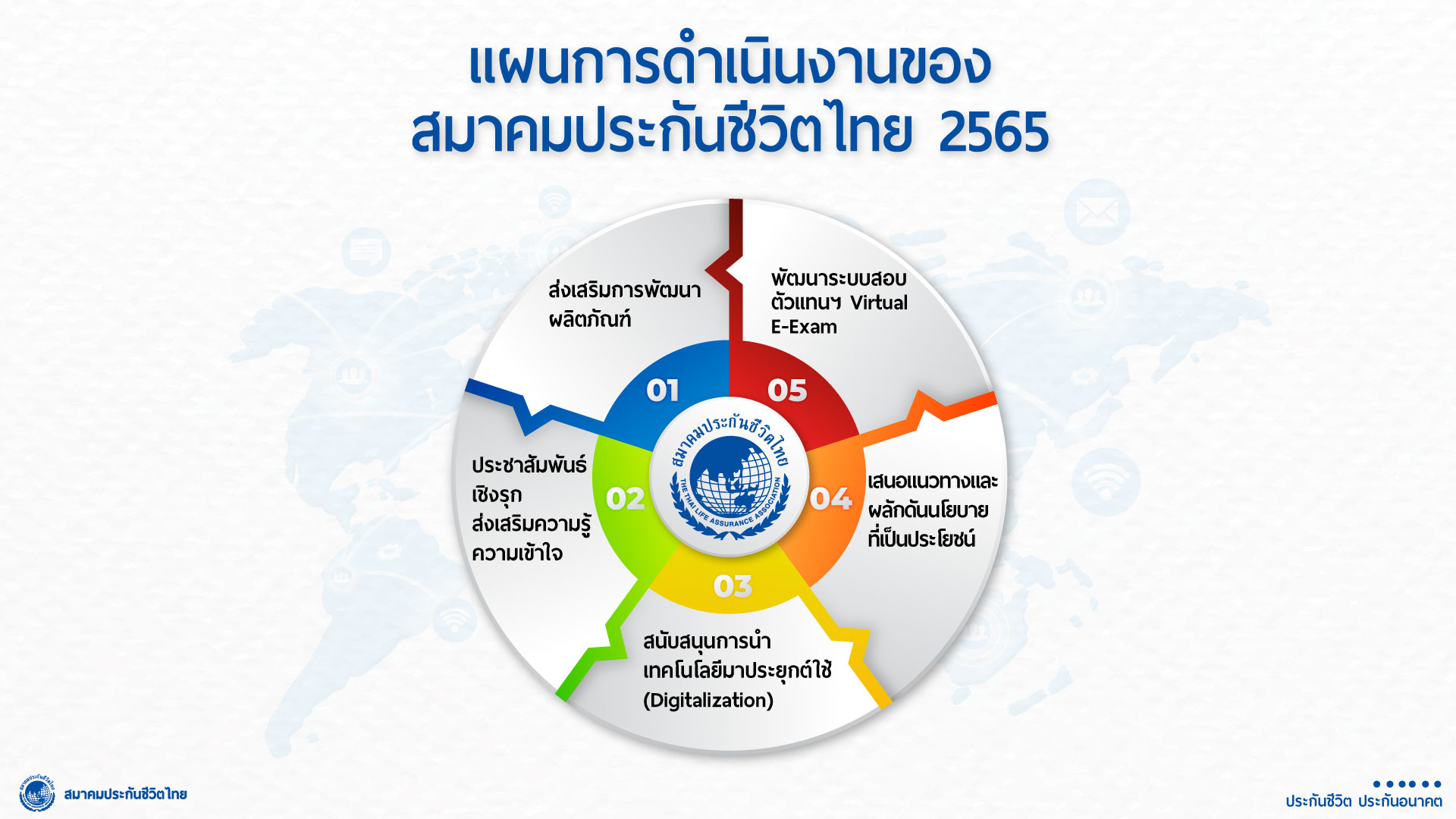 ในปี 2565 สมาคมประกันชีวิตไทยจึงมีแผนการดำเนินงานเพื่อเตรียมพร้อมรับมือต่อปัจจัยท้าทายรอบด้าน ยกตัวอย่างเช่น การส่งเสริมให้มีการพัฒนารูปแบบผลิตภัณฑ์ประกันชีวิตให้มีความหลากหลายเหมาะสมกับความต้องการที่เฉพาะเจาะจงเป็นรายบุคคล (Personalized) การเน้นประชาสัมพันธ์เชิงรุกเพื่อยกระดับความรู้ความเข้าใจความสำคัญของการทำประกันชีวิตให้กับภาคประชาชน