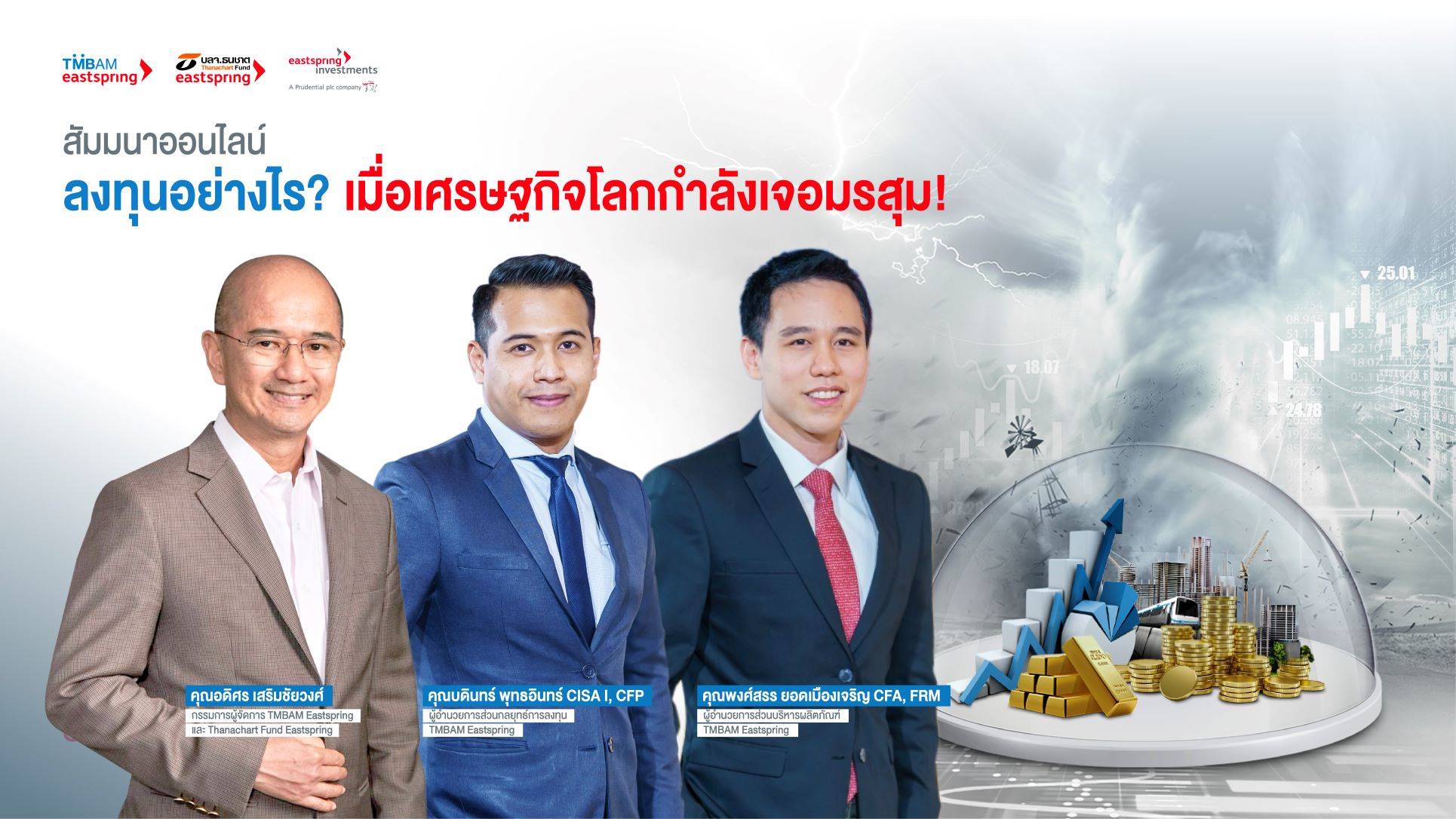25 พฤษภาคม 2565 : TMBAM Eastspring และ Thanachart Fund Eastspring จัดงานสัมมนาออนไลน์ “ลงทุนอย่างไร เมื่อเศรษฐกิจโลกกำลังเจอมรสุม” เมื่อวันพุธที่ 25 พฤษภาคม 2565 ที่ผ่านมา เพื่ออัพเดตโอกาสการลงทุนในสถานการณ์ที่ตลาดการลงทุนผันผวนสูงมาก โดยได้รับเกียรติจาก นายอดิศร เสริมชัยวงศ์ กรรมการผู้จัดการ TMBAM Eastspring และ Thanachart Fund Eastspring, นายบดินทร์ พุทธอินทร์ ผู้อำนวยการส่วนกลยุทธ์การลงทุน TMBAM Eastspring และนายพงศ์สรร ยอดเมืองเจริญ, CFA, FRM ผู้อำนวยการส่วนบริหารผลิตภัณฑ์ TMBAM Eastspring