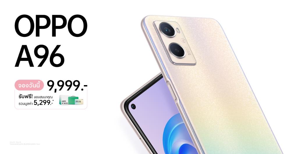 โดย OPPO A96 สามารถจองได้แล้วตั้งแต่วันนี้ - 9 มิถุนายนนี้ พร้อมรับของสมนาคุณ E-VIP Card ประกันจอแตก MINI SUIT CASE รวมมูลค่า 5,299 บาท โดย OPPO A96 และ OPPO A77 5G จะวางจำหน่ายอย่างเป็นทางการในวันที่ 10 มิ.ย. นี้ ณ OPPO Brand Shop ทุกสาขา และตัวแทนจำหน่ายทั่วประเทศ