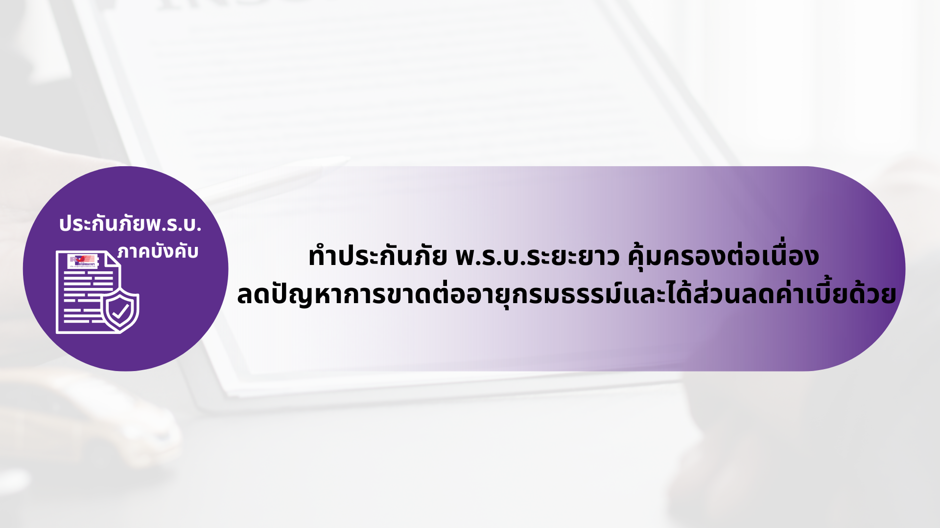 และเพื่อแก้ปัญหาประชาชนไม่ได้รับความคุ้มครองกรณีเกิดอุบัติเหตุ บริษัทกลางฯ จึงได้เปิดโอกาสให้เจ้าของรถจักรยานยนต์ได้ทำประกันภัย พ.ร.บ.รถจักรยานยนต์ ให้ครอบคลุมยาวนานขึ้น จากเดิมที่ต้องต่ออายุกรมธรรม์แบบปีต่อปี ขยายให้เป็นระยะยาวตั้งแต่ 3 ปีถึง 5 ปี เพื่ออำนวยความสะดวกและเพิ่มทางเลือกให้เจ้าของรถที่เช่าซื้อสามารถทำประกันภัย พ.ร.บ. ตามระยะเวลาที่เช่าซื้อได้