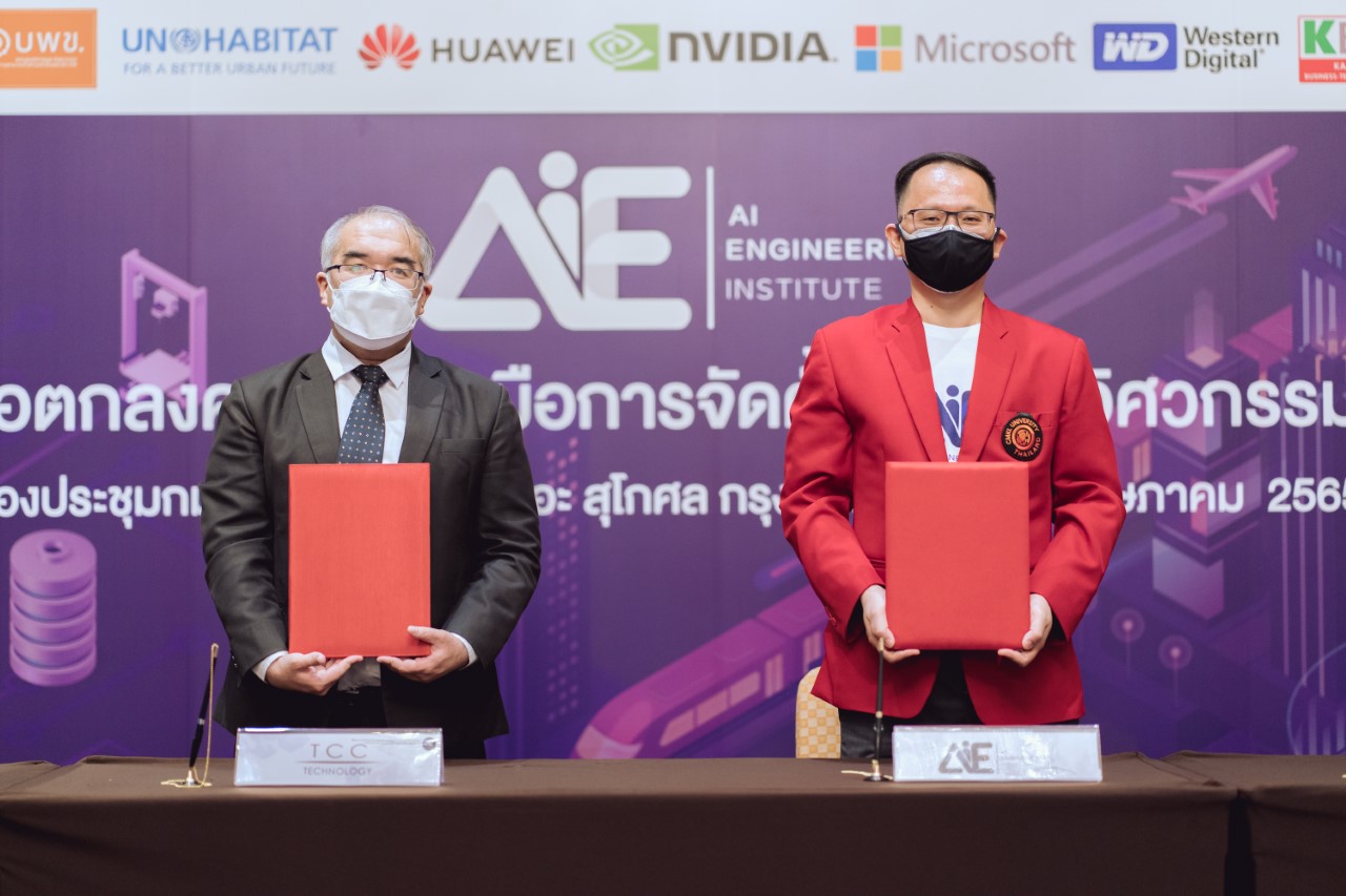 กรุงเทพฯ 8 มิถุนายน 2565 : บริษัท ที.ซี.ซี. เทคโนโลยี จำกัด (ทีซีซีเทค) นำโดย นายธีรพันธุ์ เหลืองนฤมิตชัย กรรมการผู้จัดการ (ซ้าย) และมหาวิทยาลัยซีเอ็มเคแอล (CMKL) นำโดย รศ.ดร.สุพันธุ์ ตั้งจิตกุศลมั่น อธิการบดี (ขวา) ลงนามบันทึกข้อตกลงความร่วมมือภายใต้ชื่อ “สถาบันวิศวกรรมปัญญาประดิษฐ์ (AI Engineering Institute) AIEI” เพื่อส่งเสริมความร่วมมือและพัฒนาหลักสูตรด้านวิศวกรรมปัญญาประดิษฐ์ วิศวกรรมคอมพิวเตอร์และเทคโนโลยีดิจิทัล ให้มีคุณภาพรองรับการพัฒนาเศรษฐกิจ และสังคม รวมไปถึงการร่วมสนับสนุนโครงการวิจัยและพัฒนางานวิจัย ต่อยอดและประยุกต์ใช้งานวิศวกรรมเปิดพื้นที่การศึกษาด้านวิศวกรรมปัญญาประดิษฐ์