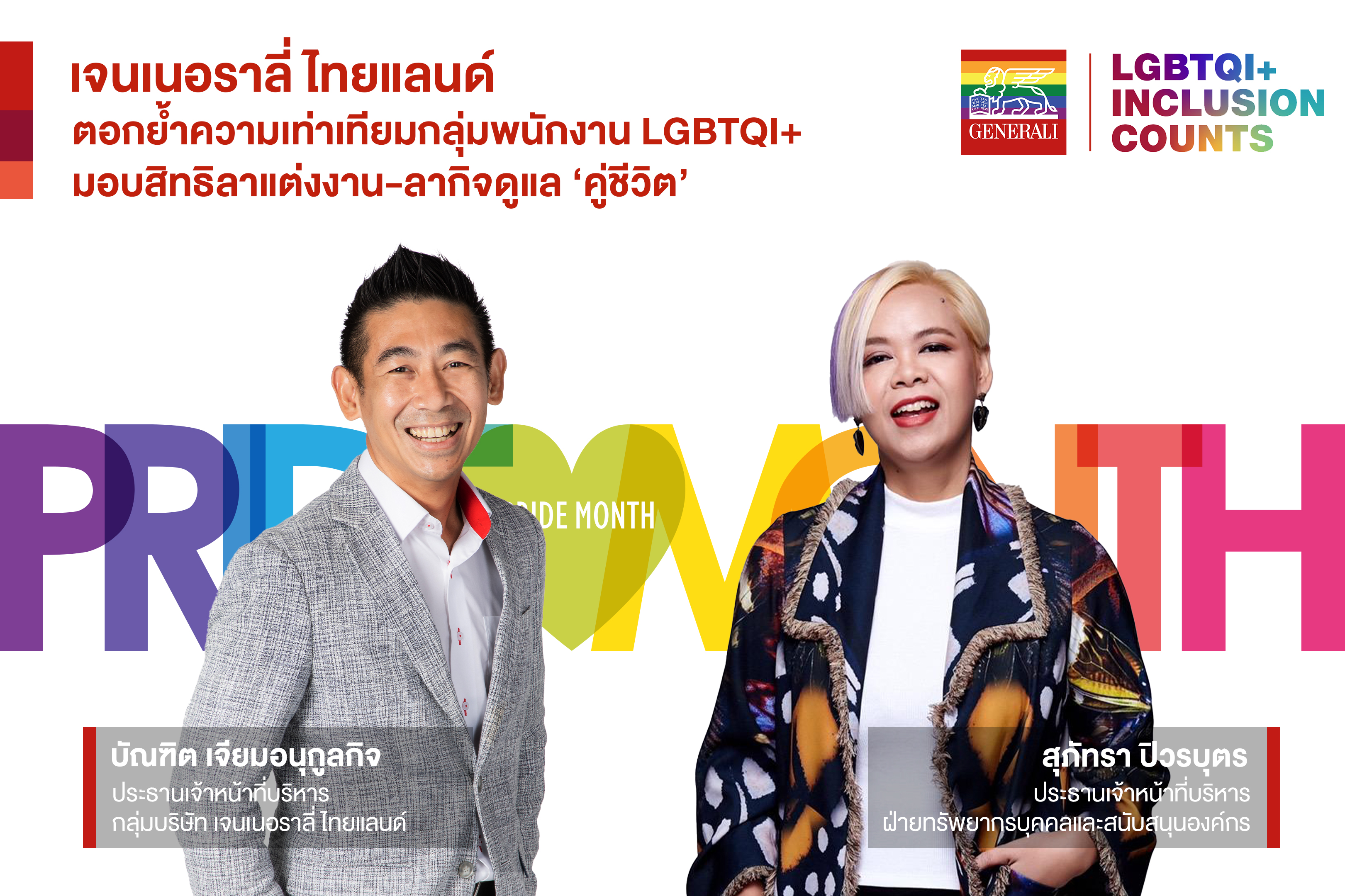 9 มิถุนายน 2565 : นายบัณฑิต เจียมอนุกูลกิจ ประธานเจ้าหน้าที่บริหาร กลุ่มบริษัทเจนเนอราลี่ ไทยแลนด์ เปิดเผยว่า “ในเดือนมิถุนายนของทุกปีถือเป็นเดือนแห่งการเฉลิมฉลองความภาคภูมิใจของชาว LGBTQI+ ที่ได้ต่อสู้เพื่อสิทธิความเท่าเทียมทางเพศ โดยเจนเนอราลี่ ไทยแลนด์ ได้ให้ความสำคัญกับประเด็นดังกล่าวมาอย่างต่อเนื่อง และยังถือเป็นบริษัทประกันเจ้าแรก ๆ ที่ผลักดันความเท่าเทียมทางเพศมาตั้งแต่ปี 2017 ผ่านการออกนโยบาย “Gen Love Wins: Insurance For All เพราะความรักชนะทุกสิ่ง”