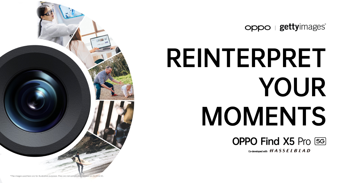 เพื่อสร้างแรงบันดาลใจให้กับช่างภาพในการจับภาพและแบ่งปันเรื่องราวของภาพที่ไม่เหมือนใครผ่านสมาร์ตโฟน OPPO และ Getty Images ได้ร่วมมือกันในแคมเปญ Reinterpret Your Moment โดยในแคมเปญนี้ Getty Images จะมอบข้อมูลเชิงลึกที่มีความสร้างสรรค์ในธีมภาพถ่ายห้าธีม ซึ่งผู้ใช้ OPPO Find X5 Pro 5G จะสามารถตีความธีมที่เลือกผ่านภาพถ่ายที่ตนเองสร้างสรรค์ได้