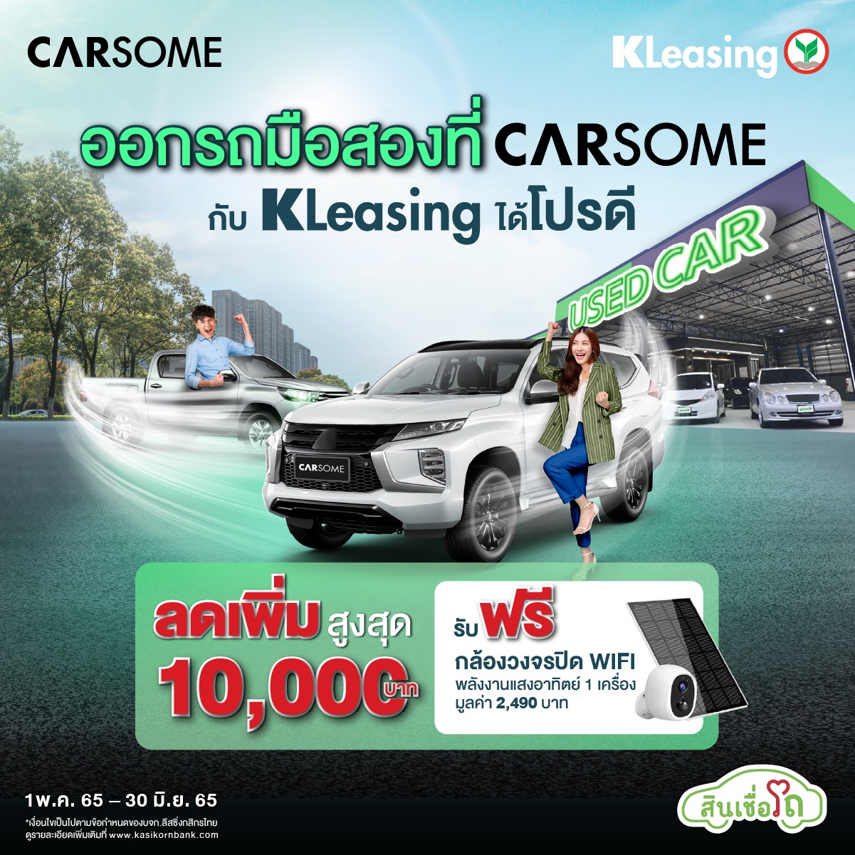 ลีสซิ่งกสิกรไทย จึงได้จับมือเป็นพันธมิตรกับคาร์ซัมคาร์ซัม แพลตฟอร์มอีคอมเมิร์ซซื้อขายรถมือสองครบวงจรที่ใหญ่ที่สุดในเอเชียตะวันออกเฉียงใต้ ด้วยการผนึกกำลังและนำจุดแข็งของทั้งลีสซิ่งกสิกรไทยและคาร์ซัมมาต่อยอดนำเสนอสิทธิพิเศษให้แก่ผู้บริโภค โดยออกแคมเปญพิเศษ “โปร หน้าฝน ลดไหลลื่นนน” สำหรับผู้ออกรถยนต์มือสองกับคาร์ซัมและสมัครสินเชื่อกับลีสซิ่งกสิกรไทย รับวงเงินกู้สูงสุด 100% ผ่อนชำระได้นานถึง 84 เดือน ดอกเบี้ยต่ำเริ่มต้นเพียง 2.79% ต่อปี