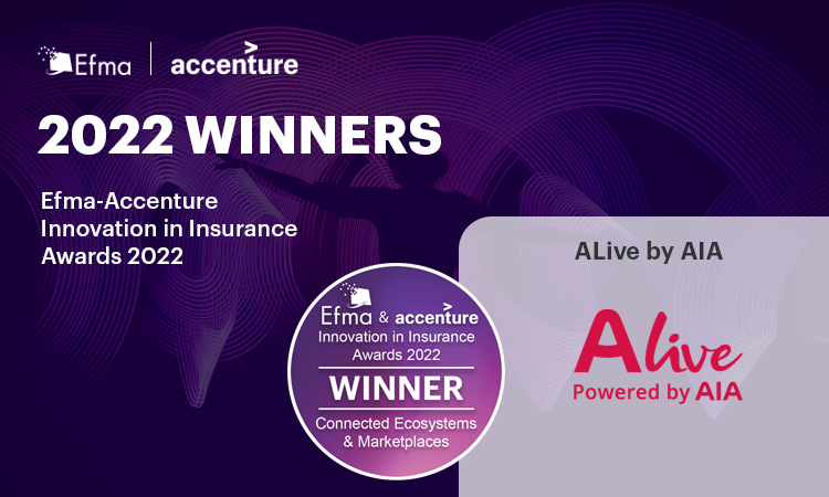 กรุงเทพฯ, 23 มิถุนายน 2565 : เอไอเอ ประเทศไทย คว้ารางวัลแห่งเกียรติยศ “Efma-Accenture Innovation in Insurance Awards 2022” นวัตกรรมแห่งวงการประกันภัย รางวัลชนะเลิศในสาขา Connected Ecosystems & Marketplaces 2022 Award จากแอปพลิเคชัน ALive Powered by AIA แอปสามัญประจำบ้าน ดูแลครบเรื่องครอบครัว ทั้งเรื่องสุขภาพ การเงิน และการใช้ชีวิต ซึ่งเวทีนี้เป็นการแข่งขันระดับโลกที่นำเสนอแนวคิดและแนวทางในการปฏิบัติใหม่ ๆ ที่ดีที่สุดในการพลิกโฉมการประกันภัยจากผลงานอันโดดเด่น