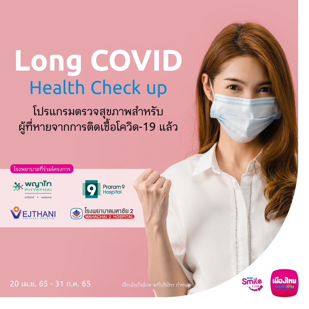 สมาชิกฯ สามารถแลกคะแนนสะสม เพื่อรับโปรแกรมตรวจวัดระดับภูมิหลังฉีดวัคซีน Covid-19 หรือโปรแกรมตรวจสุขภาพลองโควิด (Long COVID Health Check up) ในการตรวจประเมินร่างกาย และฟื้นฟูร่างกายภายหลังติดเชื้อไวรัสโคโรนา 2019 (Covid-19) ได้ที่โรงพยาบาลร่วมโครงการ ดังนี้ โรงพยาบาลพญาไท นวมินทร์ โรงพยาบาลพระราม 9 โรงพยาบาลเวชธานี โรงพยาบาลมหาชัย 2 สามารถแลกรับสิทธิ์ได้ตั้งแต่วันนี้ถึงวันที่ 31 ธันวาคม 2565 สมาชิกเมืองไทยสไมล์คลับสามารถแลกคะแนนสะสม Smile Point ได้ที่แอปพลิเคชัน MTL Click และศูนย์บริการลูกค้าเมืองไทยประกันชีวิต