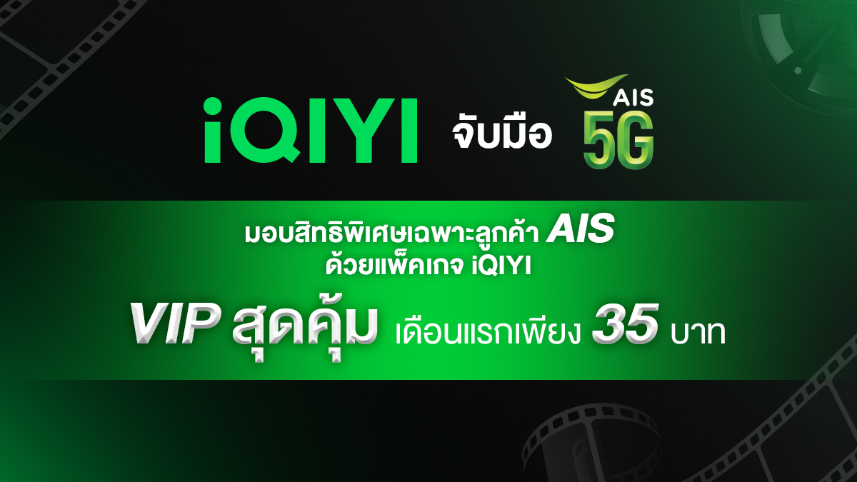 สุดคุ้มสำหรับลูกค้าเอไอเอสโดยเฉพาะ เมื่อสมัครใช้บริการครั้งแรกในราคาพิเศษ เดือนแรกเพียงเดือนละ 35 บาท จากปกติเดือนละ 119 บาท (ราคายังไม่รวม Vat) ได้ตั้งแต่วันนี้ – 31 สิงหาคม 2565 กด *678*401# โทรออกเพื่อสมัครบริการ โดยสามารถรับชมคอนเทนต์ได้อย่างจุใจด้วยภาพคมชัดระดับ Full HD และเสียงระบบ Dolby Atmos เสมือนดูในโรงภาพยนตร์ สามารถดูได้พร้อมกัน 2 จอ, ดาวน์โหลดเพื่อดูแบบออฟไลน์ไม่มีโฆษณาคั่น สามารถเช็คระยะเวลาของ VIP ได้ในหมวด “สมาชิกของฉัน” บนแอปพลิเคชัน iQIYI (อ้ายฉีอี้) และ เว็บไซต์ www.iQ.com เท่านั้น *(อัตราค่าบริการที่กำหนด ยังไม่ได้รวมภาษีมูลค่าเพิ่ม และไม่รวมค่าบริการอินเทอร์เน็ต)