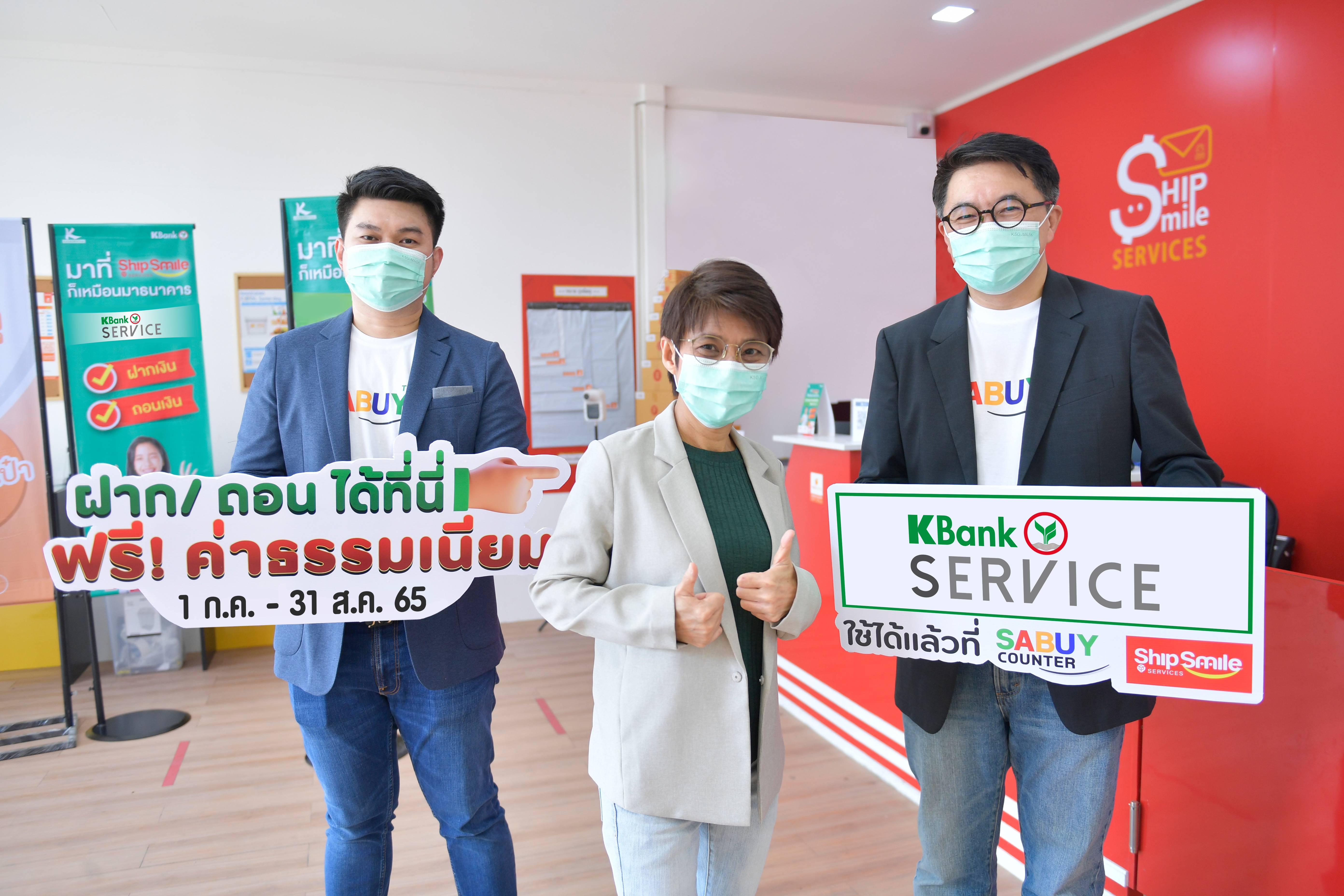 ล่าสุด ธนาคารกสิกรไทย จึงได้ร่วมมือกับบริษัท สบาย เทคโนโลยี จำกัด (มหาชน) หรือ SABUY เปิดให้บริการธนาคารกสิกรไทย (KBank Service) ผ่านร้านชิปป์สไมล์ (Shipsmile) แฟรนไชส์ร้านสะดวกส่ง รับส่งพัสดุในเครือสบาย โดยความร่วมมือในครั้งนี้จะเริ่มจากการให้บริการรับฝากและถอนเงินสดบัญชีธนาคารกสิกรไทยก่อน โดยลูกค้าที่ใช้บริการร้านชิปสไมล์ เพียงแสดงบัตรประชาชนก็สามารถฝากเงินสดเข้าบัญชีธนาคารกสิกรไทยได้ทันที และหากลูกค้าต้องการถอนเงินสด ก็สามารถใช้ K PLUS ถอนเงินสดออกจากบัญชีได้โดยไม่ต้องใช้บัตรเอทีเอ็ม