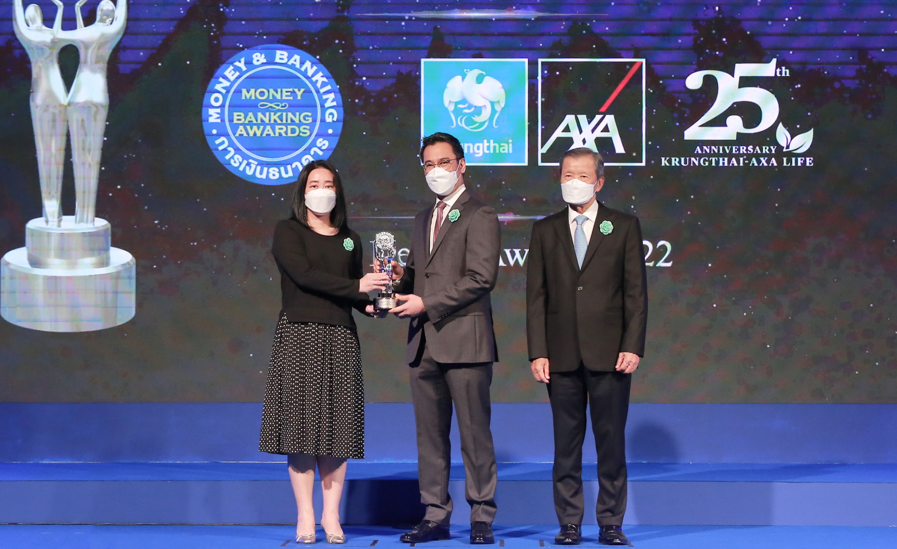 21 กรกฎาคม 2565 : ดร. เศรษฐพุฒิ สุทธิวาทนฤพุฒิ ผู้ว่าการธนาคารแห่งประเทศไทย (คนกลาง) ประธานในพิธี และ สันติ วิริยะรังสฤษฎ์ ประธานบรรณาธิการ วารสารการเงินธนาคาร (คนซ้าย) ให้เกียรติมอบรางวัลเกียรติยศ Money & Banking Awards 2022 โดยมี คุณสุกัญญา อิสรานุวัฒน์ชัย รองประธานอาวุโส ฝ่ายสื่อสารการตลาดและภาพลักษณ์องค์กร บมจ.กรุงไทย-แอกซ่า ประกันชีวิต (คนขวา) รับรางวัล Great Design Awards บูธสวยงามประเภทพื้นที่ 210-225 ตารางเมตร จากงานมหกรรมการเงิน ครั้งที่ 22 Money Expo 2022 ซึ่งบริษัทฯ ได้รับรางวัลดังกล่าวต่อเนื่องเป็นปีที่ 2 โดยงานประกาศรางวัลจัดขึ้นเมื่อวันที่ 20 กรกฎาคม 2565 ณ ห้อง Fuji Grand Ballroom โรงแรม นิกโก้ กรุงเทพฯ