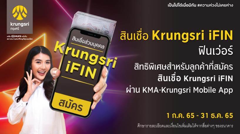 22 กรกฎาคม 2565 : กรุงศรี (ธนาคารกรุงศรีอยุธยา จำกัด (มหาชน)) มอบสิทธิพิเศษสำหรับลูกค้าที่สมัครสินเชื่อ Krungsri iFIN ผ่าน KMA – Krungsri Mobile App วันนี้ – 31 ธันวาคม 2565 เมื่อได้รับอนุมัติและรับเงินกู้โดยวิธีโอนเงินเข้าบัญชีเงินฝากธนาคารกรุงศรีอยุธยาตามเงื่อนไขที่กำหนด ภายในวันที่ 31 มกราคม 2566 จะได้รับเงินคืน (Cash back) ตามวงเงินอนุมัติ ดังนี้ รับเงินคืน 500 บาท สำหรับวงเงินอนุมัติตั้งแต่ 200,000 – 499,999 บาท และรับเงินคืนถึง 1,000 บาท สำหรับวงเงินอนุมัติตั้งแต่ 500,000 บาทขึ้นไป จำกัดการรับเงินคืน 1 สิทธิ์ /คน ตลอดระยะเวลาโปรโมชัน การพิจารณาอนุมัติสินเชื่อเป็นไปตามหลักเกณฑ์และเงื่อนไขที่ธนาคารกำหนด ![]()
