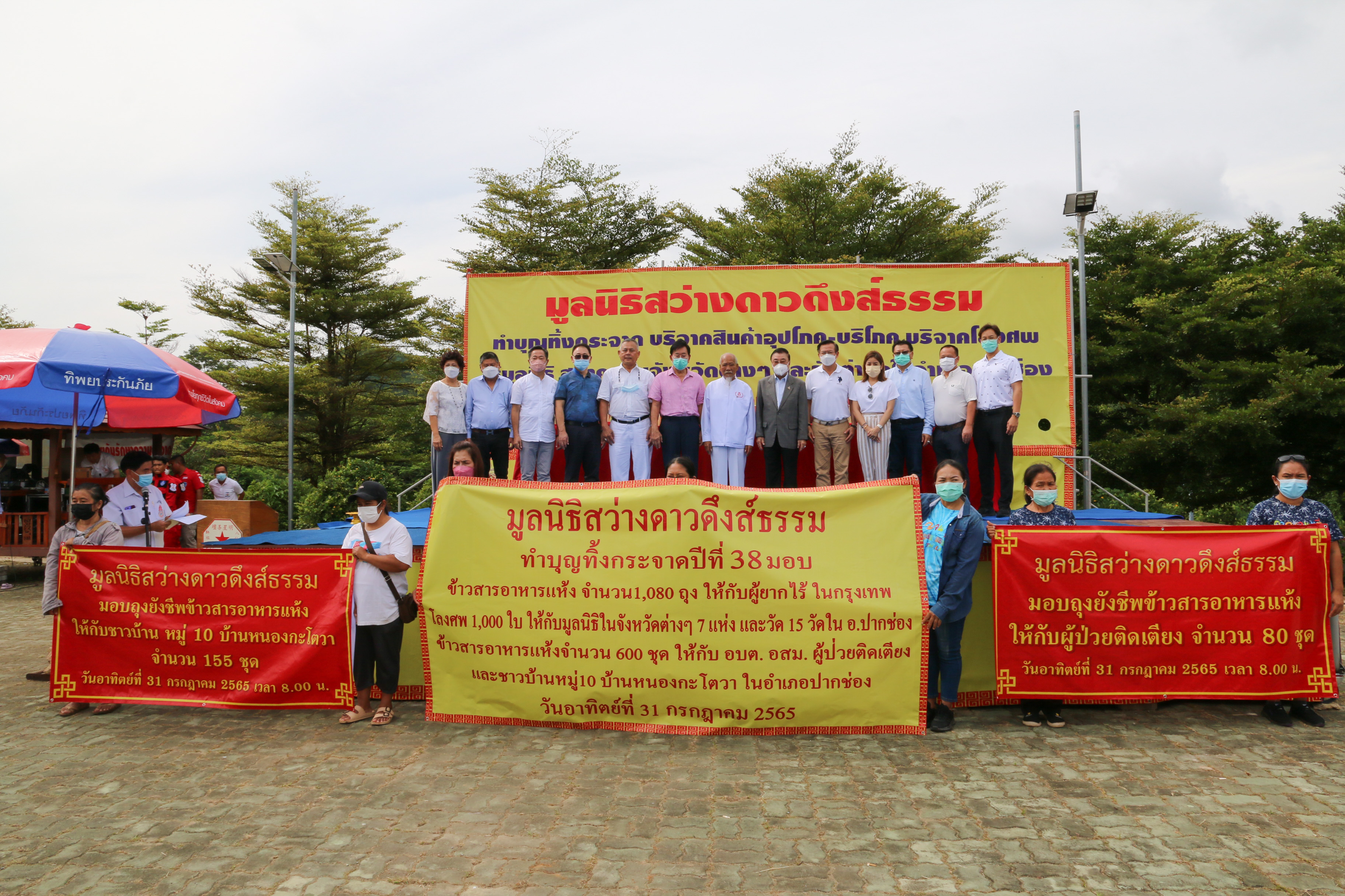 1 สิงหาคม 2565 : คุณสมใจนึก เองตระกูล ประธานกรรมการ บมจ. ทิพยประกันภัย ดร.สมพร สืบถวิลกุล ประธานเจ้าหน้าที่บริหาร บมจ.ทิพย กรุ๊ป โฮลดิ้งส์ และ กรรมการผู้จัดการใหญ่ บมจ.ทิพยประกันภัย คุณวิชชุดา ไตรธรรม ที่ปรึกษากรรมการผู้จัดการใหญ่ บมจ.ทิพยประกันภัย และคุณสินีนารถ เองตระกูล กรรมการผู้จัดการ กลุ่มบริษัท เอสอี บิซ พร้อมหน่วยหนุมานทิพยจิตอาสา ร่วมทำบุญทิ้งกระจาดมอบข้าวสารอาหารแห้ง และของใช้ที่จำเป็นอื่นๆ อาทิ ยารักษาโรค รองเท้ายาง จำนวน 1,680 ชุด ให้กับผู้ยากไร้และผู้ป่วยติดเตียง