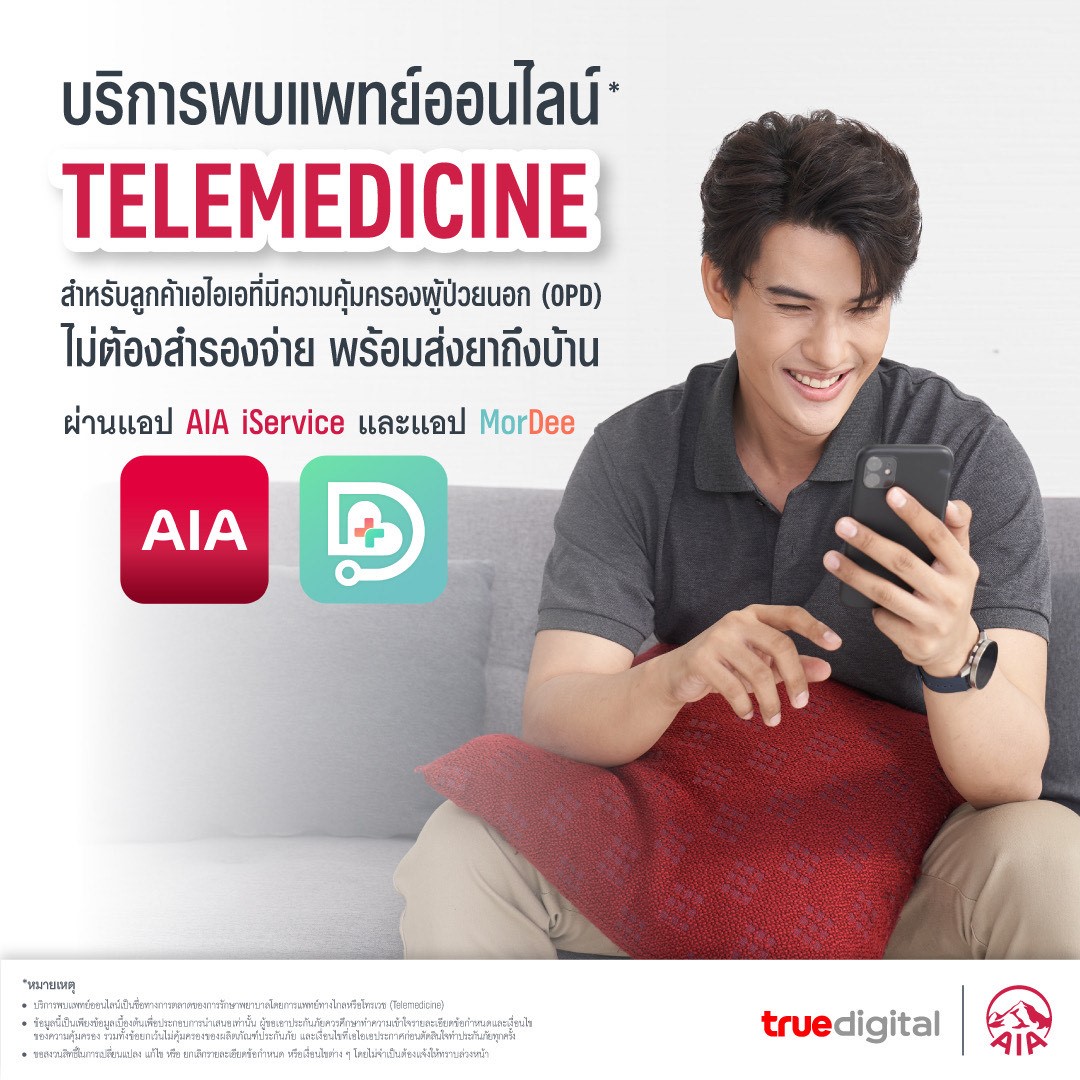 ล่าสุดขยายความร่วมมือให้ครอบคลุมกลุ่มลูกค้าเอไอเอมากยิ่งขึ้น โดยมอบสิทธิพิเศษบริการพบแพทย์ออนไลน์ (Telemedicine) สำหรับลูกค้าแบบรายเดี่ยวที่มีกรมธรรม์ประกันชีวิตพร้อมสัญญาเพิ่มเติมสุขภาพที่มีความคุ้มครองแบบผู้ป่วยนอก (OPD) ให้สามารถเบิกค่าปรึกษาแพทย์และค่ายาได้ตามเงื่อนไขที่ระบุในกรมธรรม์ประกันชีวิตผ่านแอปพลิเคชัน MorDee (หมอดี) โดยไม่ต้องสำรองจ่าย ตอบโจทย์การดูแลสุขภาพในยุคดิจิทัล ให้ลูกค้าเอไอเอใช้บริการพบแพทย์ออนไลน์ได้อย่างสะดวกสบาย รวดเร็ว ประหยัด และปลอดภัย