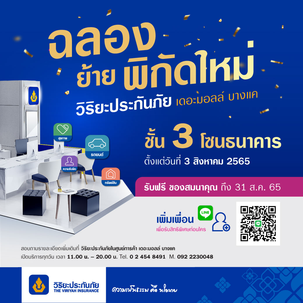 5 สิงหาคม 2565 : นางสาวกัญญา สุนทรวร รองผู้จัดการฝ่ายการตลาดดิจิทัลและช่องทางพิเศษ บริษัท วิริยะประกันภัย จำกัด (มหาชน) พร้อมผู้บริหารและพนักงานในสังกัดสาขาบางพลัด ร่วมเปิดจุดบริการวิริยะประกันภัย (V-station) ภายในศูนย์การค้า เดอะมอลล์ บางแค ซึ่งได้มีการย้ายจุดให้บริการไปอยู่ที่ชั้น 3 (โซนธนาคาร) เพื่ออำนวยความสะดวกให้กับลูกค้าในการรับบริการด้านประกันวินาศภัยอย่างครบวงจร พิเศษ รับฟรี! ของสมนาคุณ เมื่อมาใช้บริการ ตั้งแต่วันนี้ ถึง 31 สิงหาคม 2565