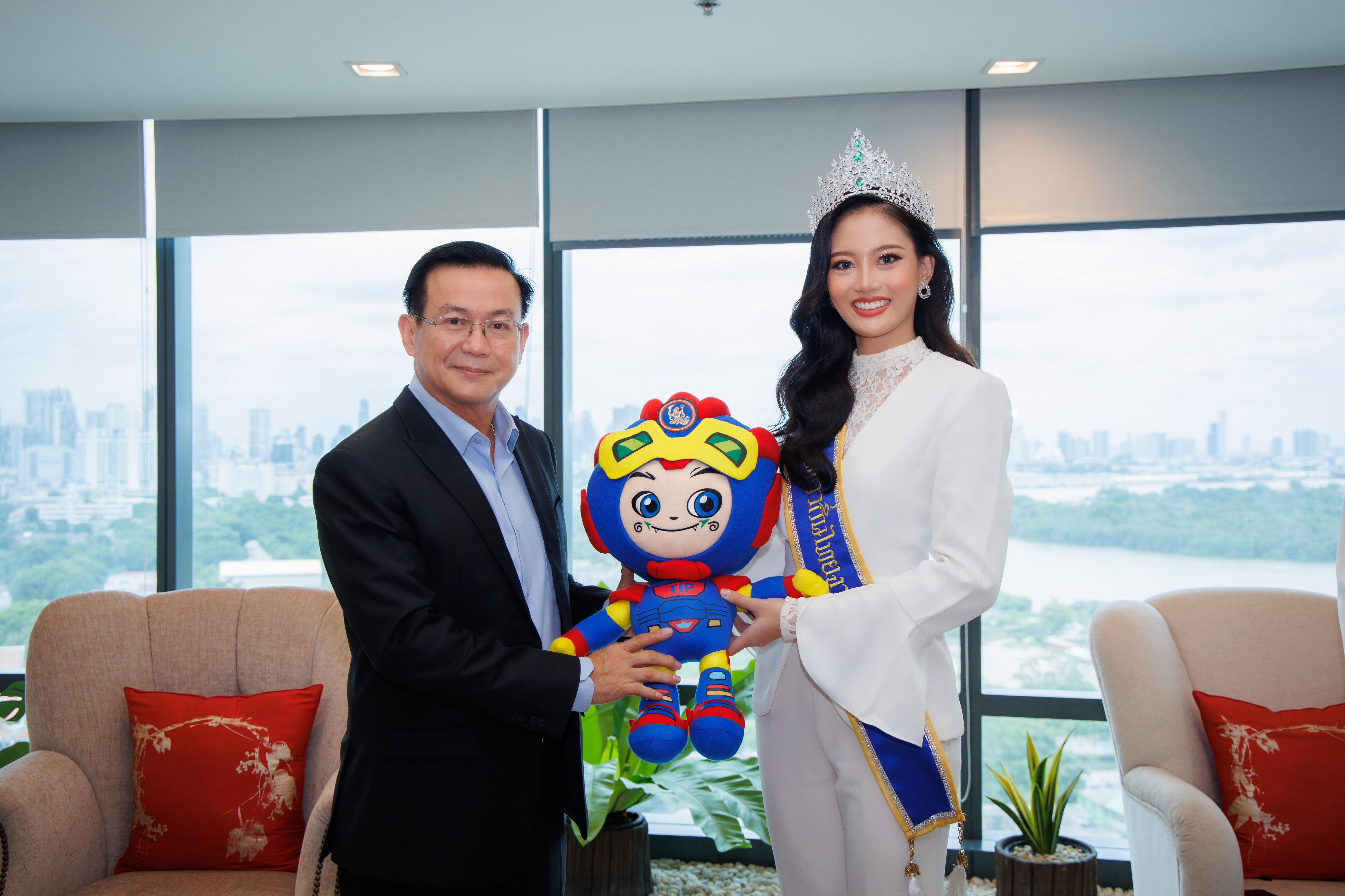 6 สิงหาคม 2565 : ดร.สมพร สืบถวิลกุล ประธานเจ้าหน้าที่บริหาร บมจ.ทิพย กรุ๊ป โฮลดิ้งส์ และ กรรมการผู้จัดการใหญ่ บมจ. ทิพยประกันภัย ให้การต้อนรับน้องมิ้ว สุจารี กาญจนกฤต นางสาวถิ่นไทยงาม ประจำปี 2565 และรองทั้ง 4 ที่นำทีมเข้าแสดงความขอบคุณ ทิพยประกันภัยที่ให้การสนับสนุนการประกวด