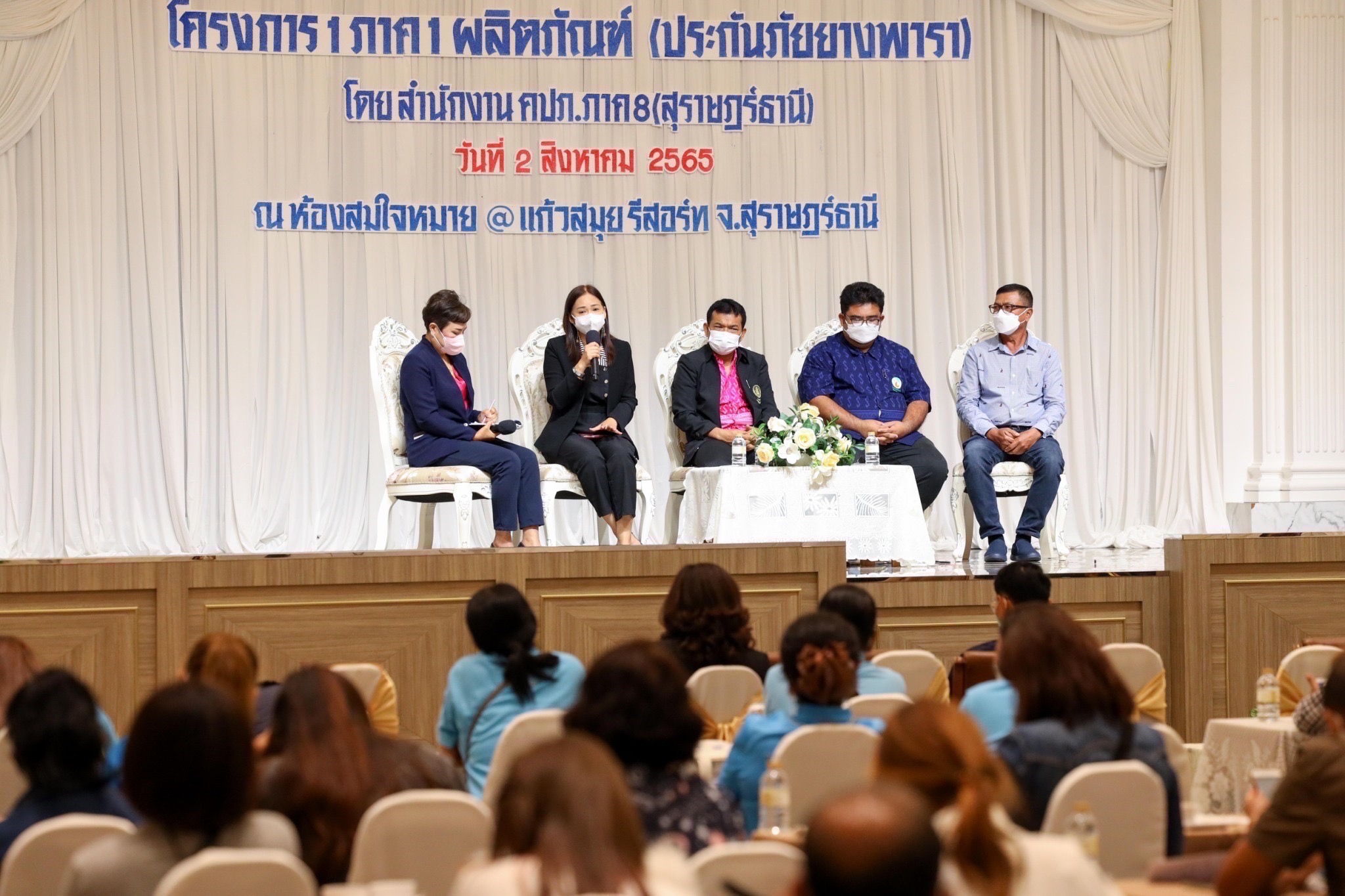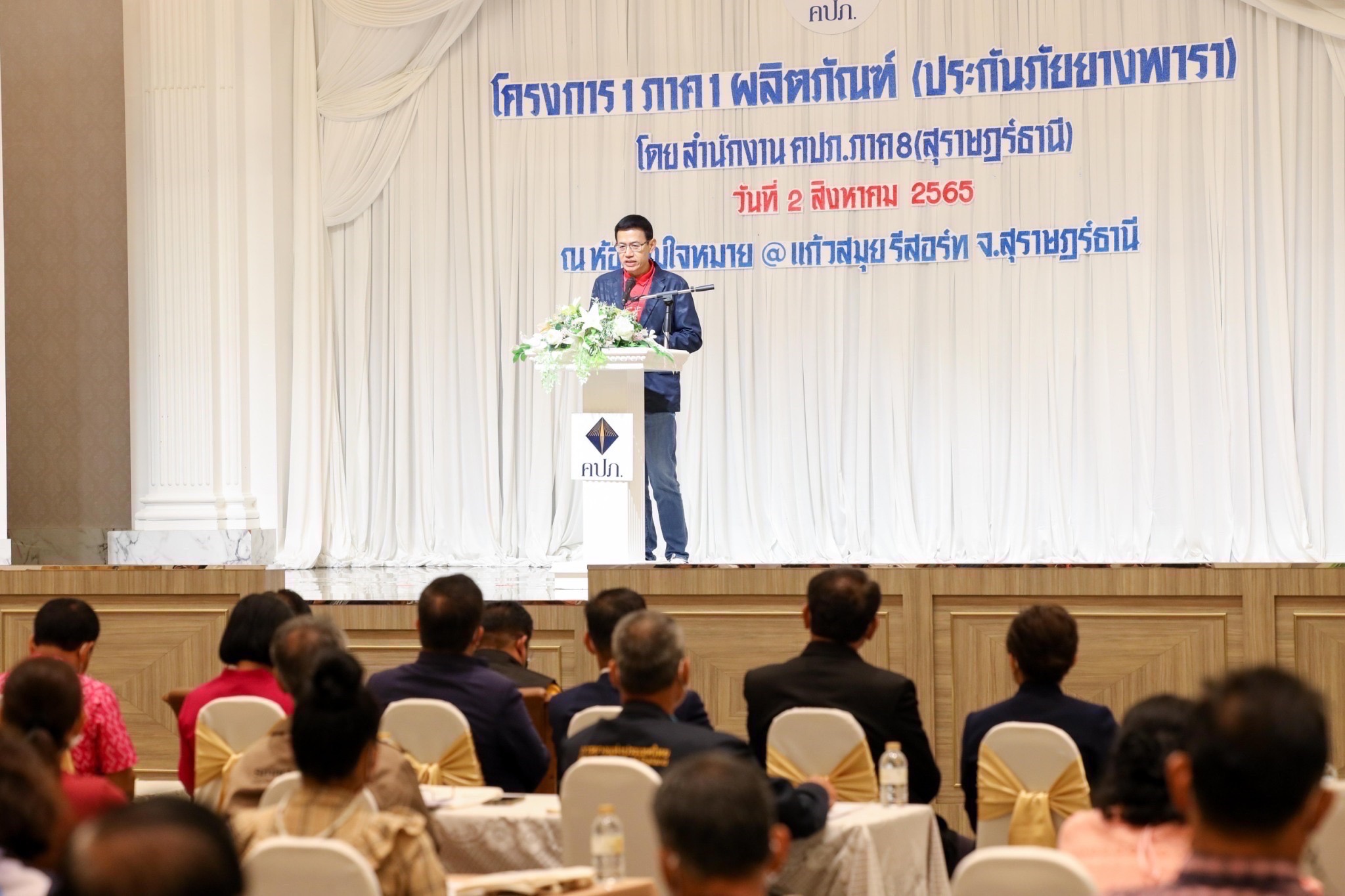 โครงการส่งเสริมให้มีการพัฒนาผลิตภัณฑ์ประกันภัยที่ตอบโจทย์ความต้องการของพี่น้องประชาชนในแต่ละภาค ภายใต้โครงการ 1 ภาค 1 ผลิตภัณฑ์ประกันภัย เป็นนโยบายสำคัญของสำนักงาน คปภ. ที่ดำเนินการเชิงรุกเพื่อให้ประชาชนในทุกภูมิภาคสามารถเข้าถึงระบบประกันภัยและมีผลิตภัณฑ์ประกันภัยที่ตอบโจทย์ความต้องการอย่างแท้จริงสำหรับปีนี้ สำนักงาน คปภ. ภาค 8 (สุราษฎร์ธานี) ได้เสนอ “โครงการ 1 ภาค 1 ผลิตภัณฑ์ (ประกันภัยยางพารา) เนื่องจากยางพาราเป็นพืชเศรษฐกิจหลักที่สำคัญเป็นอันดับหนึ่งของภาคใต้ และยังเป็นพืชเศรษฐกิจอันดับ 2 ของประเทศ