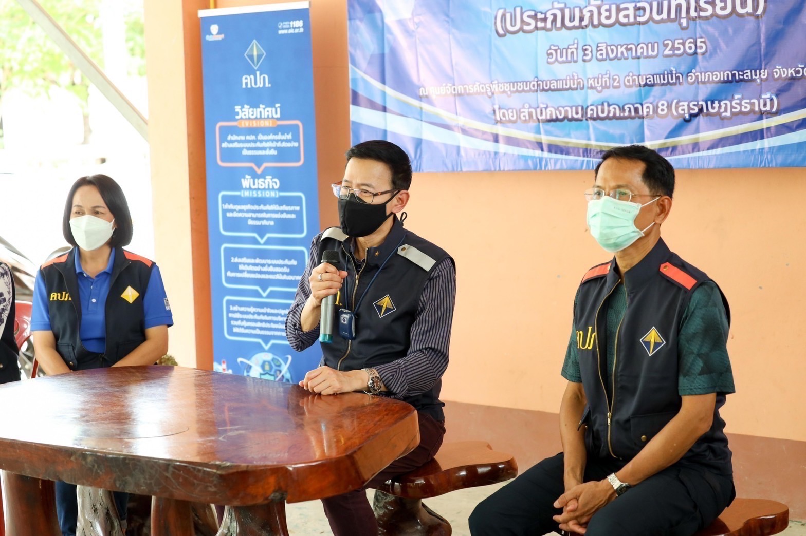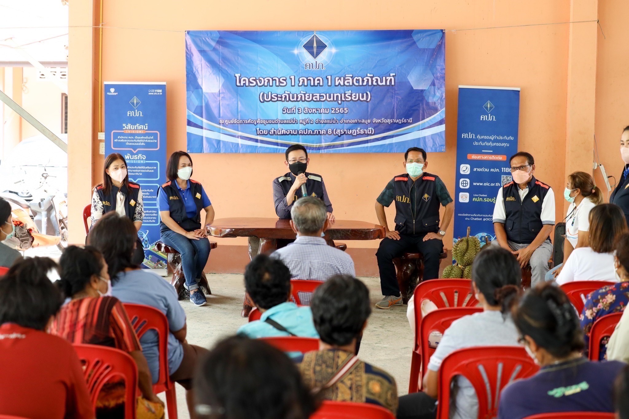 สำนักงาน คปภ. มีนโยบายเชิงรุกในการลงพื้นที่เพื่อรับฟังปัญหาเกี่ยวกับความเสี่ยงของพืชผลทางเกษตรจากเกษตรกรชาวสวนทุเรียนบนเกาะสมุย เพื่อนำข้อมูลไปปรับปรุงและพัฒนาผลิตภัณฑ์ประกันภัยในส่วนที่เกี่ยวข้อง โดยเกษตรกรส่วนใหญ่ปลูกทุเรียนหมอนทองทวายที่ให้ผลผลิตนอกฤดูกาล (เดือนก.ค - ก.ย) เพาะปลูกบนภูเขาสูง และได้สะท้อนปัญหาที่หลากหลายโดยเฉพาะภัยจากศัตรูพืช เช่น โรคเชื้อราสีชมพูซึ่งเคยระบาดอย่างหนักทำให้ทุเรียนเสียหายนับพันต้น เมื่อ 4-5 ปีก่อน ราคาน้ำมัน ปุ๋ย ยากำจัดศัตรูพืชที่มีราคาที่สูงกว่าแผ่นดินใหญ่ เนื่องจากเป็นพื้นที่เกาะและมีค่าขนส่งที่จะต้องนำมาใช้คำนวณเป็นต้นทุนการผลิต
