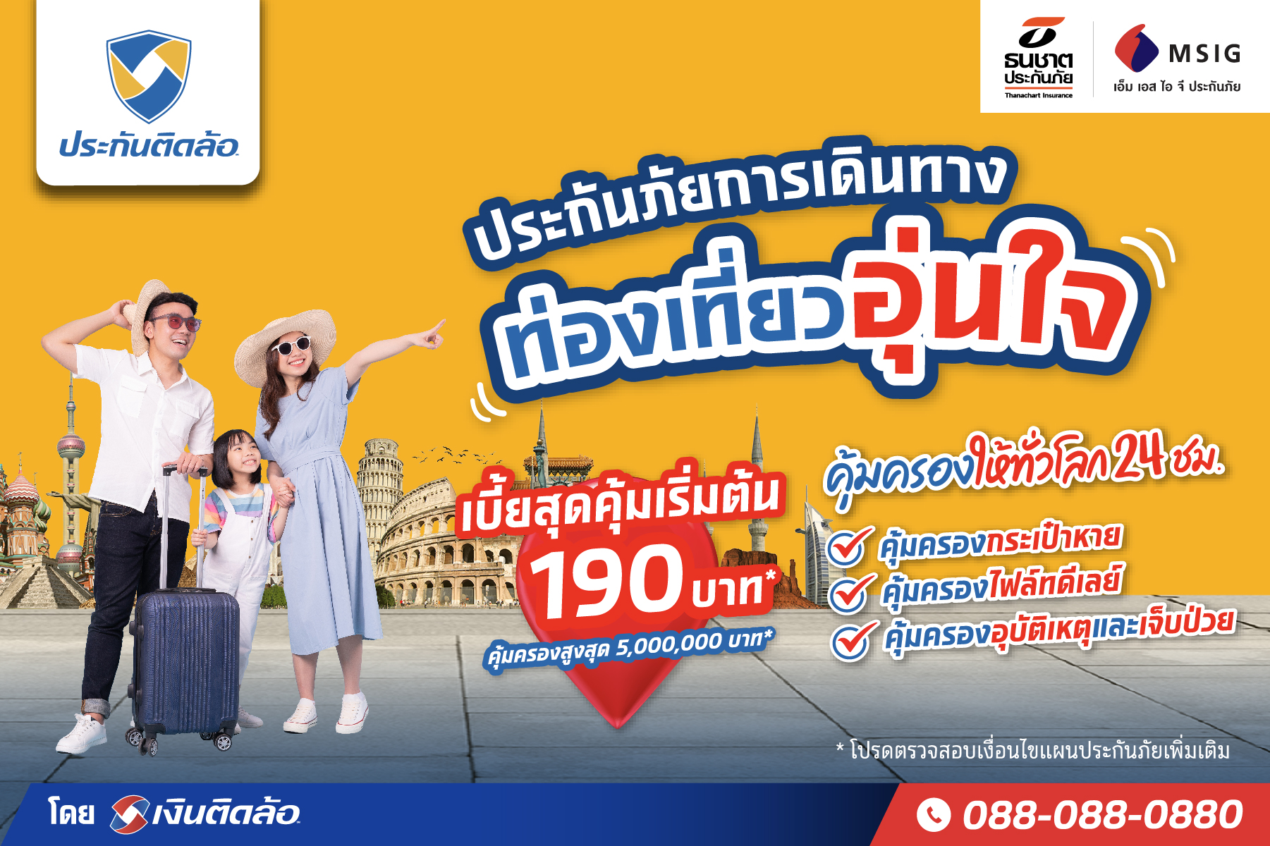 ทั้งนี้ “ประกันติดล้อ” แบรนด์นายหน้าประกันภัย จึงเปิดตัว “ประกันภัยการเดินทาง ท่องเที่ยวอุ่นใจ” ให้ความคุ้มครองระหว่างการเดินทางทั่วโลก ครอบคลุมทั้งอุบัติเหตุ การเจ็บป่วย และเสียชีวิต สูงสุด 5,000,000 บาท นอกจากนี้ยังมีความคุ้มครองอีกมากมาย เช่น ครอบคลุมกระเป๋าเดินทางและทรัพย์สินสูญหาย รวมกันสูงสุด 60,000 บาท รวมถึงความเสียหายที่เกิดจากเที่ยวบินดีเลย์ สูงสุด 35,000 บาท (ดูรายละเอียดเพิ่มเติมได้จากแผนประกันภัย) เป็นต้น เพื่อให้นักท่องเที่ยวสามารถเดินทางได้อย่างอุ่นใจ โดยเบี้ยประกันภัยเริ่มต้นเพียง 190 บาทต่อวัน