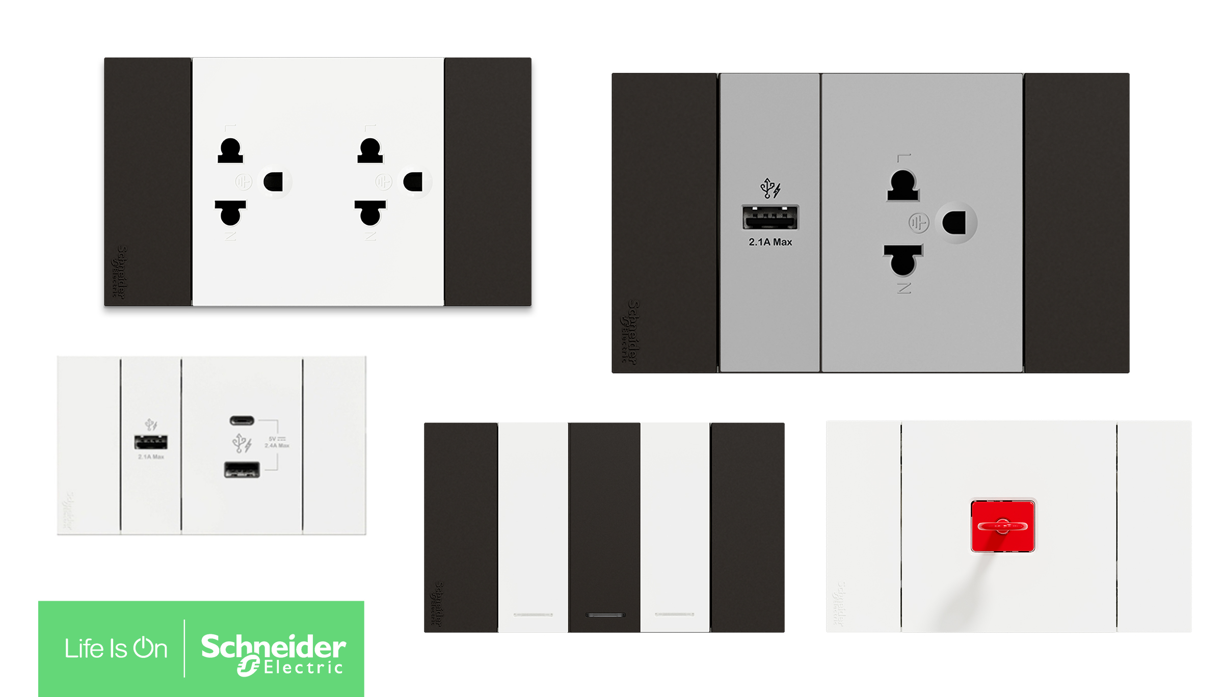 ตำแหน่งของสวิตช์และปลั๊กไฟ ควรสูงจากพื้น 80 เซนติเมตร ซึ่งเป็นระดับที่เหมาะสำหรับอุปกรณ์ไฟฟ้าที่ต้องการความสะดวกในการทำงาน เช่น คอมพิวเตอร์ โน้ตบุ๊ค ฯลฯ และควรอยู่ในจุดที่ปลอดภัย แสงแดดส่องไม่ถึง และห่างจากบานหน้าต่างอย่างน้อย 10 เซนติเมตร ป้องกันความร้อน ความชื้น และปัญหาน้ำฝนซึมเข้ามาได้ ในบรรดาผลิตภัณฑ์กลุ่มสวิตช์และเต้ารับหรือปลั๊กไฟ ต้องยกนิ้วให้ AvatarOn A จากชไนเดอร์ อิเล็คทริค (Schneider Electric) นอกจากผลิตจากวัสดุคุณภาพสูง เป็นมิตรต่อสิ่งแวดล้อม ได้รับมาตรฐาน IEC (International Electro Technical Commission) ยังมีฟังก์ชั่นที่ตอบในทุกโจทย์ของการใช้งาน ไม่ว่าจะเป็นความโดดเด่นในเรื่องของการดีไซน์ที่เรียบหรู