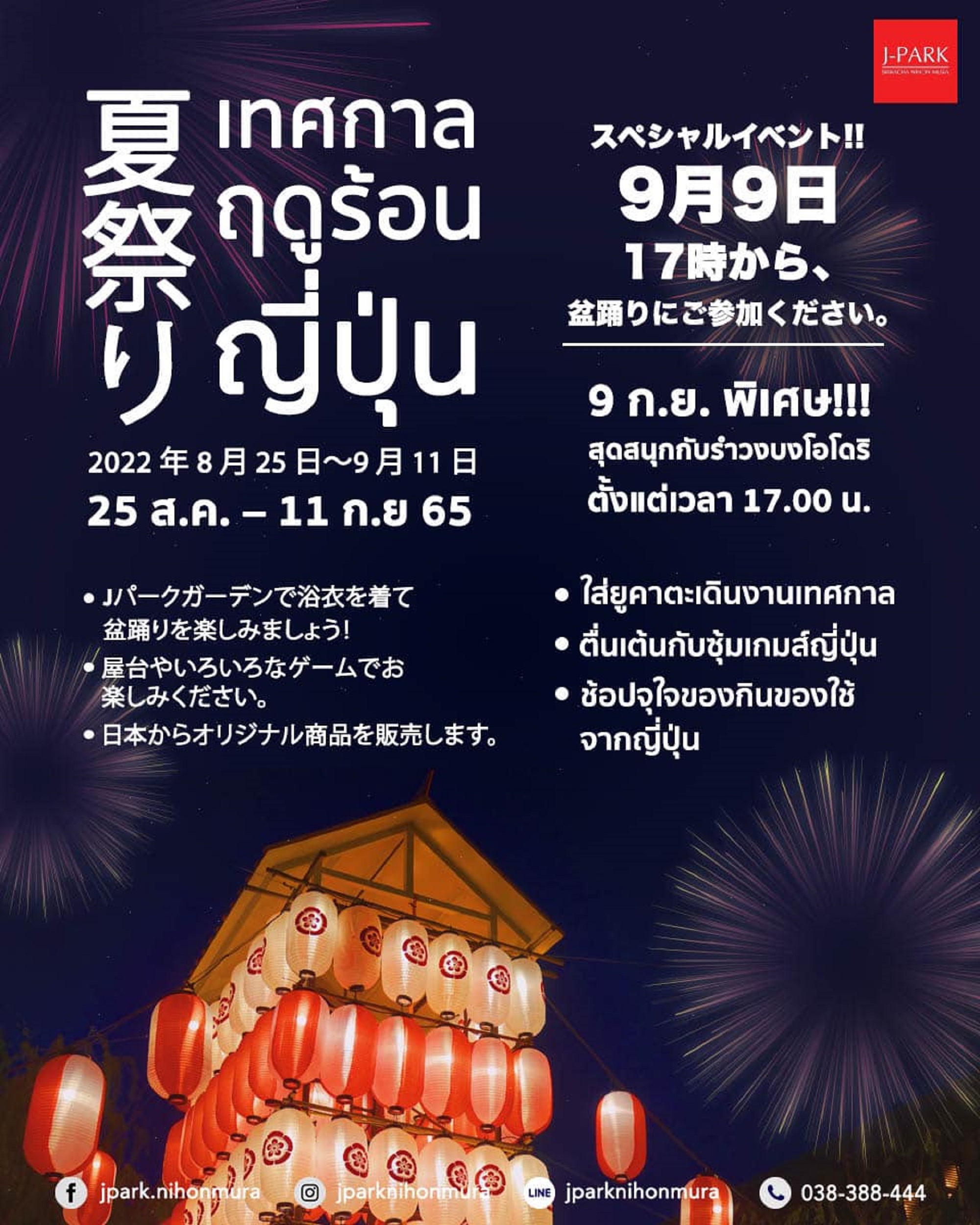 สำหรับไฮไลต์พิเศษอยู่ในวันที่ 9 ก.ย. 65 ตั้งแต่เวลา 17.00 น. ที่จะชวนทุกคนมาร่วมสนุกแบบสุดๆ กับ รำวงบงโอโดริ แบบญี่ปุ่นๆ ซึ่งในเดือนสิงหาคมเป็นช่วงฤดูร้อนของประเทศญี่ปุ่น นิยมจัดงานเทศกาลฤดูร้อน (NATSU MATSURI) อันประกอบ ไปด้วยซุ้มขายของ กิจกรรมการละเล่น และการรำวงบงโอโดริ (BON ODORI) ถือเป็นกิจกรรมที่โดดเด่นและสีสันของเทศกาลฤดูร้อนของญี่ปุ่นที่ขาดไม่ได้