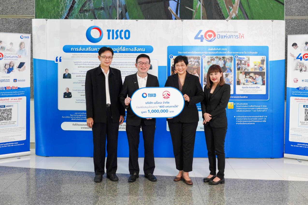 โดยมี นายศักดิ์ชัย พีชะพัฒน์ (ที่ 2 จากซ้าย) ประธานเจ้าหน้าที่บริหารกลุ่มทิสโก้ และนายธรรมนิตย์ เบญจาภิบาล (ซ้ายสุด) ผู้จัดการมูลนิธิทิสโก้เพื่อการกุศล รับมอบ ซึ่งโครงการดังกล่าวสอดคล้องกับคำมั่นสัญญาของเอไอเอ ในการมุ่งสนับสนุนผู้คนให้มีสุขภาพและชีวิตที่ดีขึ้น Healthier, Longer, Better Lives